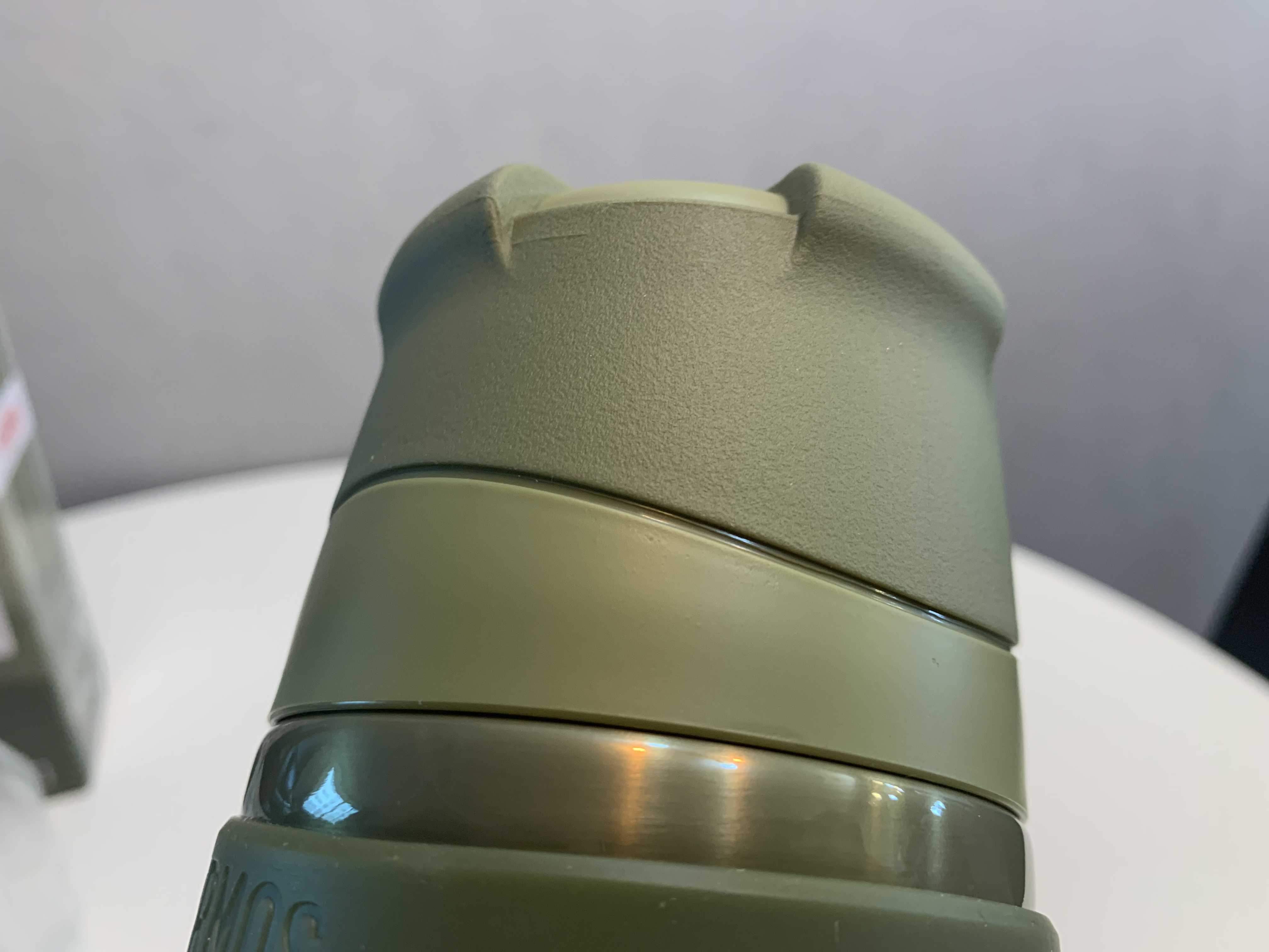 제품 표면은 약간 광택이 나는 소재입니다. 개인적으로 이런 광이 나는 재질보다는 750ml 제품들과 같이 무광에 매트한 소재가 더 좋아 보입니다. 등산용으로 출시된 제품이라 그런지 색상은 모두 산과 잘 어울리는... 얼핏 보호색 같은 느낌의 컬러로만 구성되어 있습니다. 샌드, 스톤, 포레스트 이렇게 세 가지 색상을 선택하실 수 있습니다.