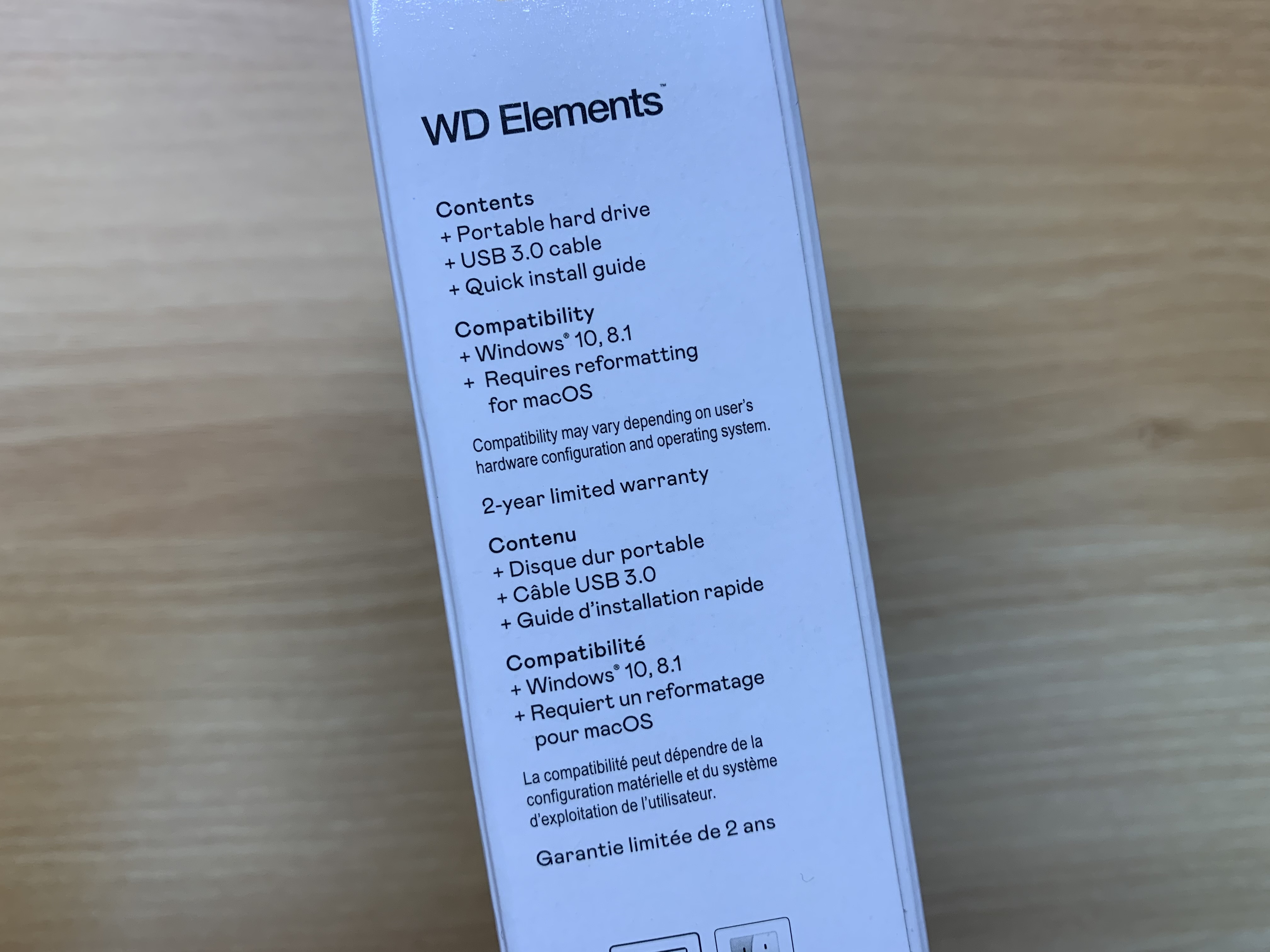 제품의 상자 옆면에 구성품에 대한 설명이 있습니다. 외장하드 본체와 USB3.0 케이블, 그리고 설명서 이렇게 있다고 안내되어 있습니다. 물론 Mac의 Time Machine 백업 기능을 사용하려면 별도의 포맷을 해야 할 필요가 있을 수 있겠지만 Windows와 MacOS에서 모두 사용이 가능합니다.