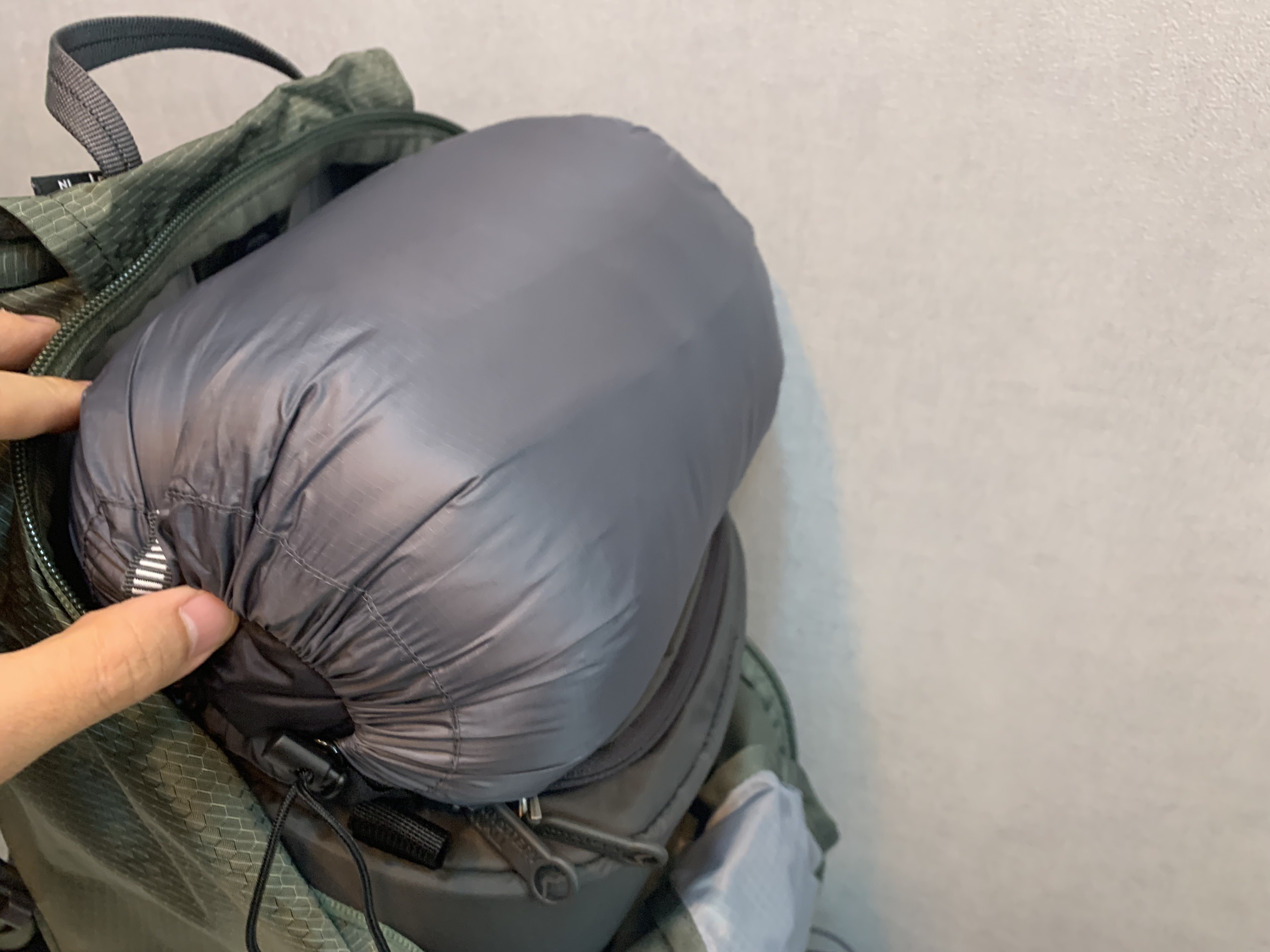 빈 공간에 경량의 구스다운 패딩을 넣어봤습니다. 큰 문제 없이 수납할 수 있습니다. 이렇게 보면 크게 춥지 않은 겨울이라고 가정해 보면 디팩 하나에는 물과 음식을 넣고 나머지 하나에는 방한용품이나 갈아입을 옷, 티슈와 같은 물건들을 넣고도 인슐레이션 한 벌 정도는 수납할 수 있다는 결론이 나오네요. 물론 장시간 능선을 걷거나 하는 상황이라면 겉에 입을 우모복을 비롯해서 더 많은 방한 용품이 필요하므로 극동계 산행에서는 확실히 부족하긴 할 것 같습니다.