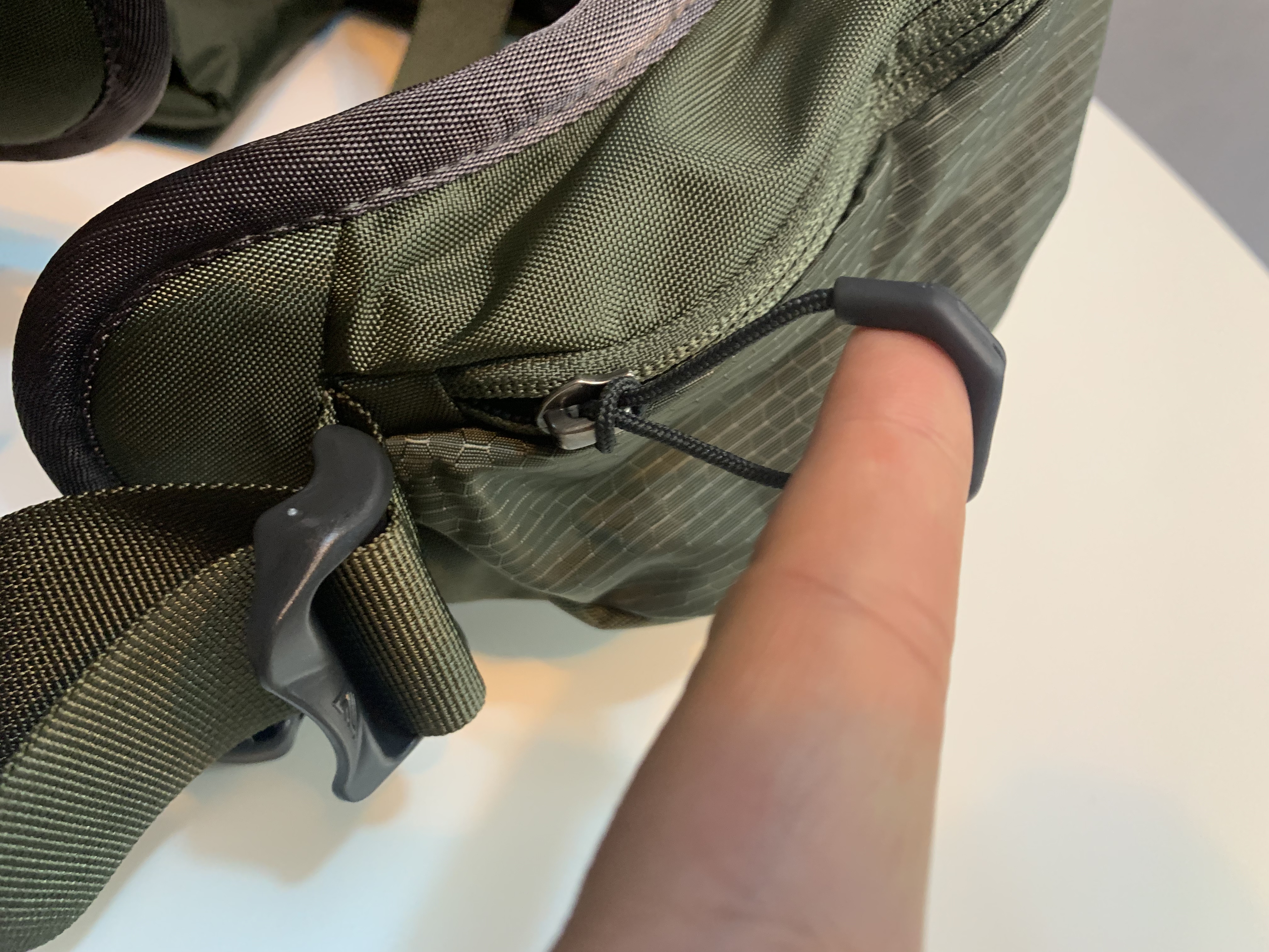 힙벨트에 있는 포켓입니다. 주로 먹을 것들을 넣고 다니는데 저는 사실 그렇게 많이 활용하지는 않습니다. 이번에 구입한 그레고리 줄루에 마침 제가 좋아하는 타입의 지퍼 고리가 연결되어 있네요. 굳이 잡을 필요 없이 사진처럼 손가락 하나만 걸고 당기면 쉽게 주머니를 열고 닫을 수 있습니다. 포켓의 사이즈는 행동식이나 기타 크기가 작은 티슈는 충분히 들어갈 사이즈이지만 스마트폰은 가지고 계신 모델마다 차이가 있어 말씀드리기가 어려울 것 같네요.