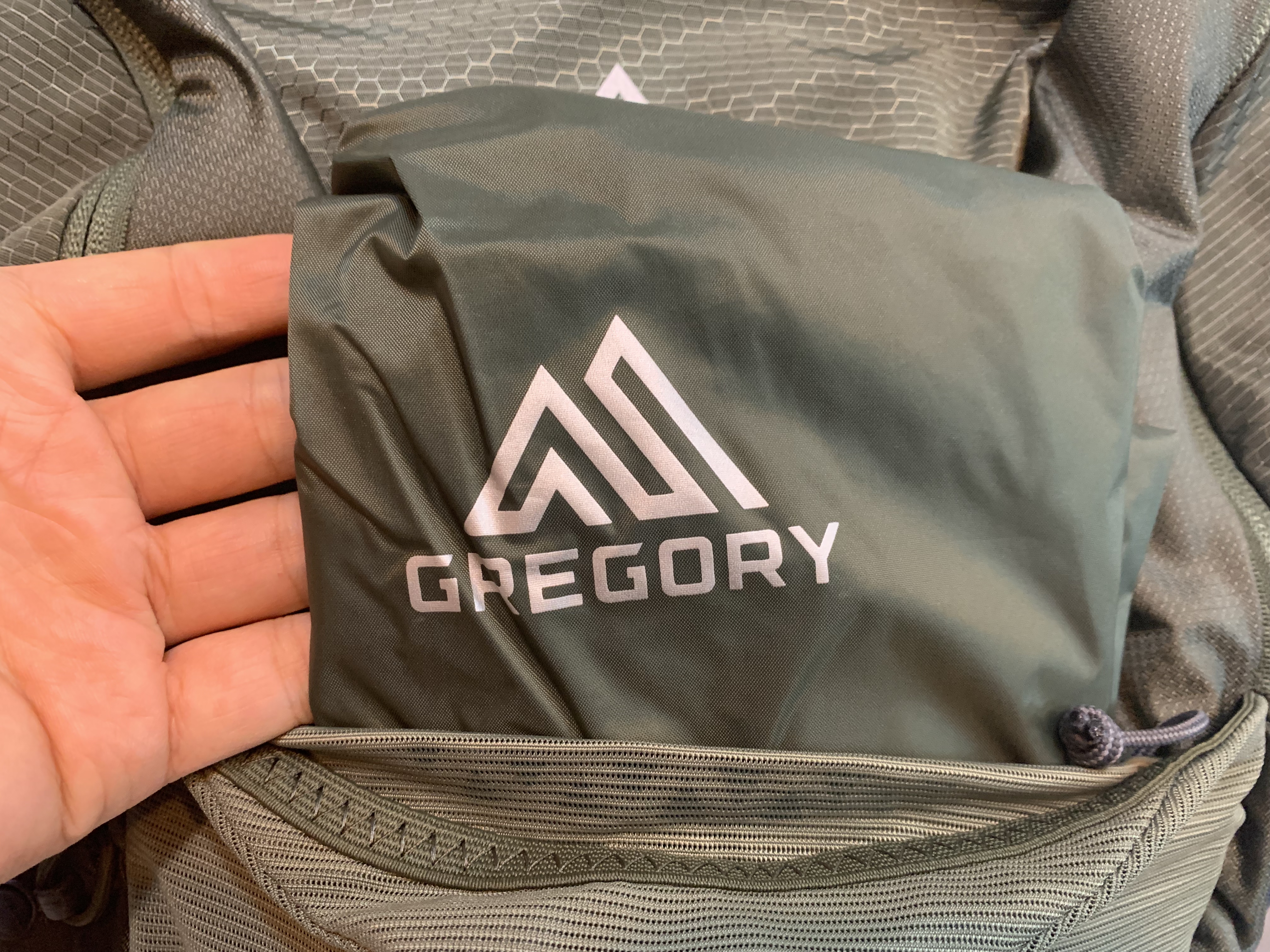 캥거루 포켓 클립을 열면 그 안에 작은 지퍼로 된 주머니가 있는데 그곳에 이렇게 레인커버가 들어있습니다. 다만 주머니가 작은 반면에 레인커버는 여러 번 접힌 상태라 앞면이 좀 불룩하게 튀어나왔는데 저는 이 공간을 비워두거나 다른 용도로 쓰고 레인커버는 메인 공간 안에 있는 수낭용 포켓에 넣고 다닐 예정입니다.