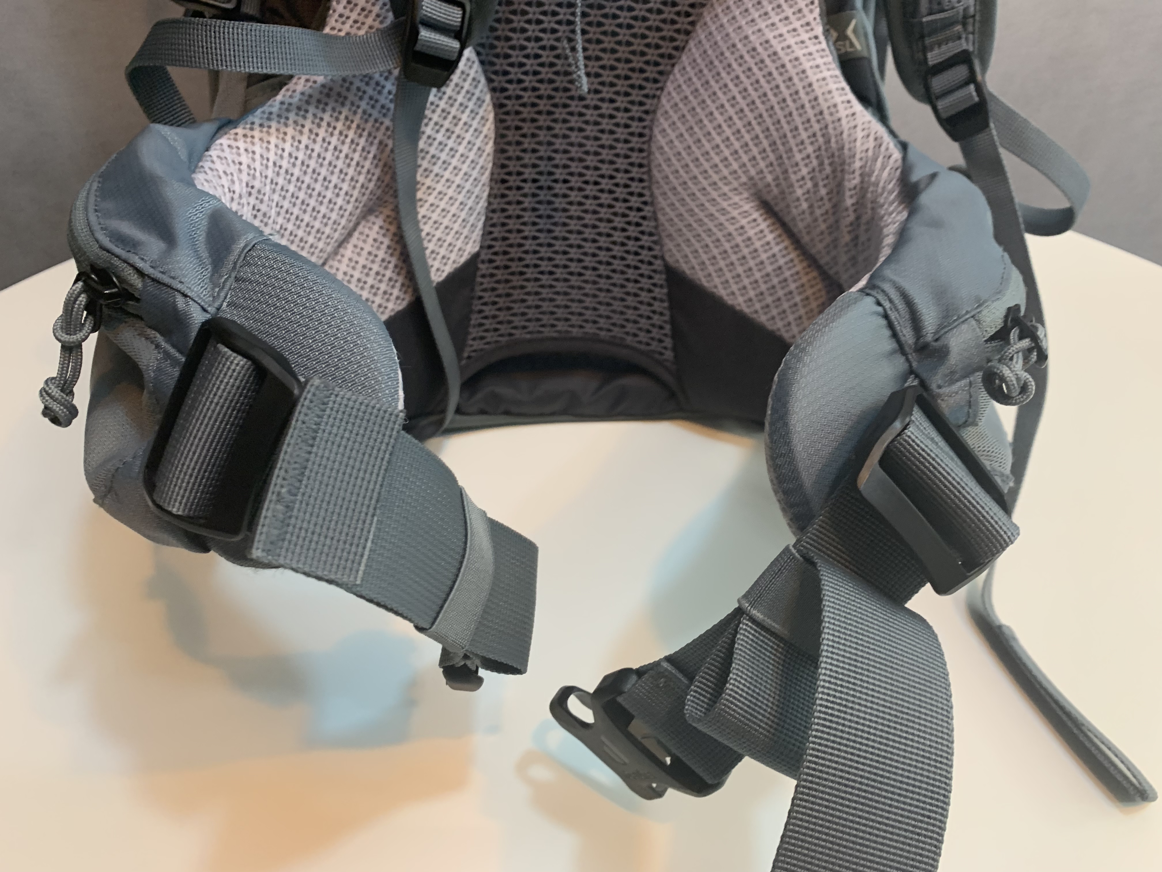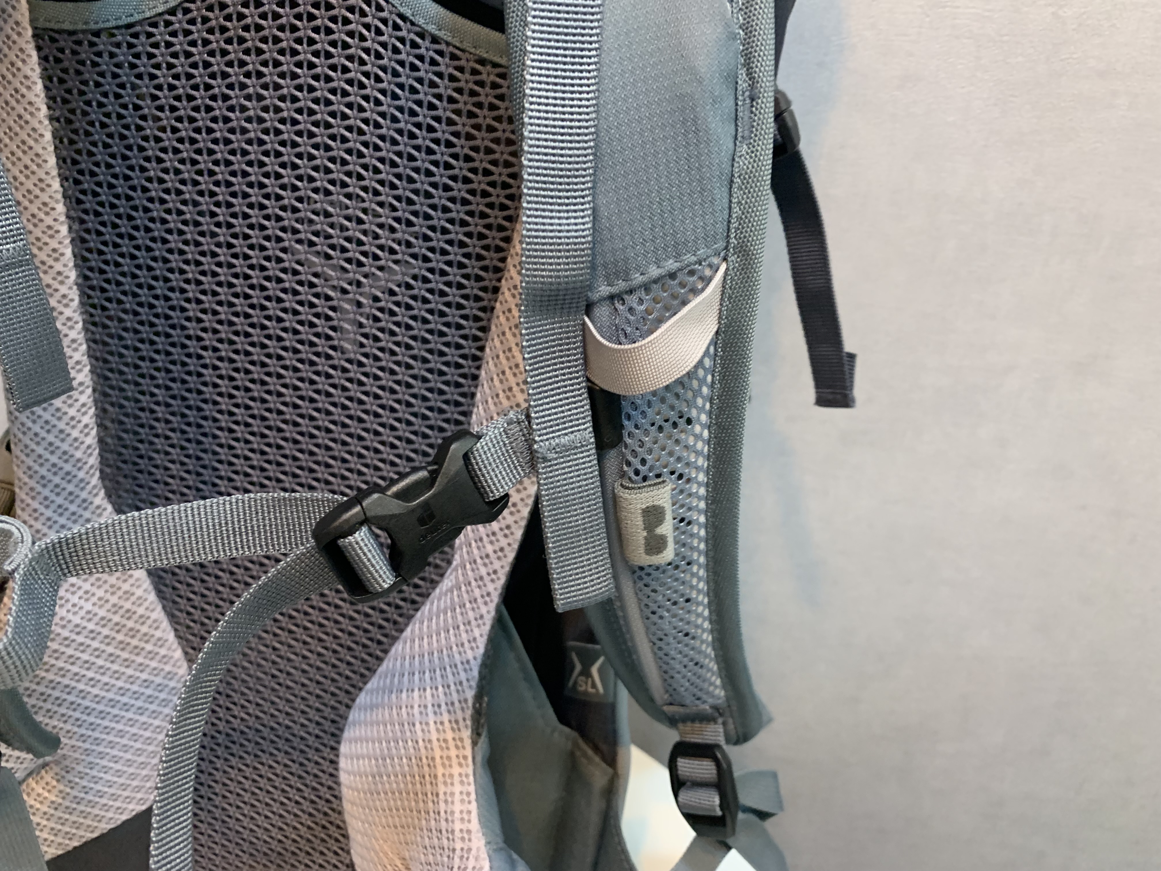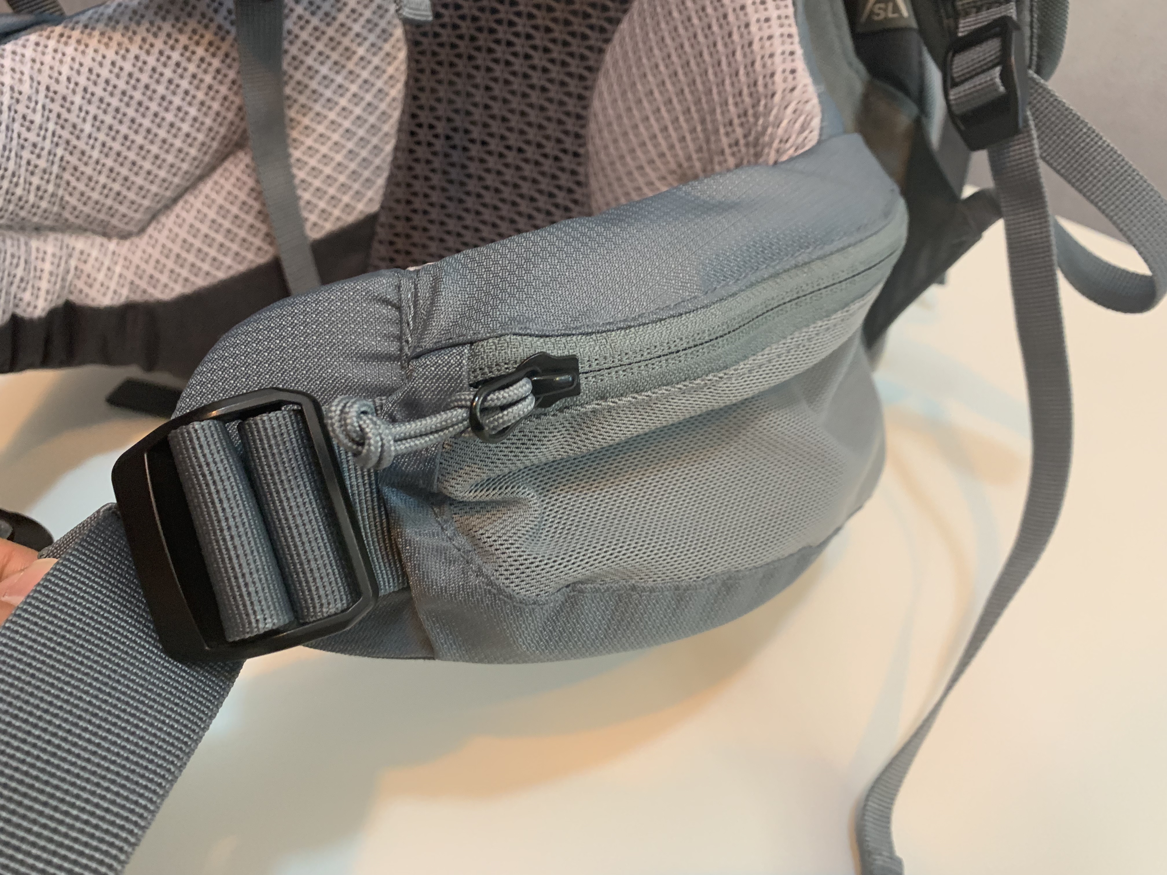 얼핏 보면 등판 길이 조절이 가능할 것 같지만 토르소 조절은 안됩니다. 그런데 여성용 배낭으로 나온 제품이라 정말 상체의 크기가 눈에 띄게 작거나 큰 게 아니라면 어지간한 경우에는 어깨끈 조절로 충분히 사용이 가능할 것 같습니다. 그리고 어깨끈 역시 남성용 배낭보다 더 슬림하게 제작되었다고 합니다. 골반 바로 윗부분에는 허리 안쪽으로 좀 더 깊숙하게 들어가 있어서 착용감이 제법 좋은 편이라고 생각됩니다.