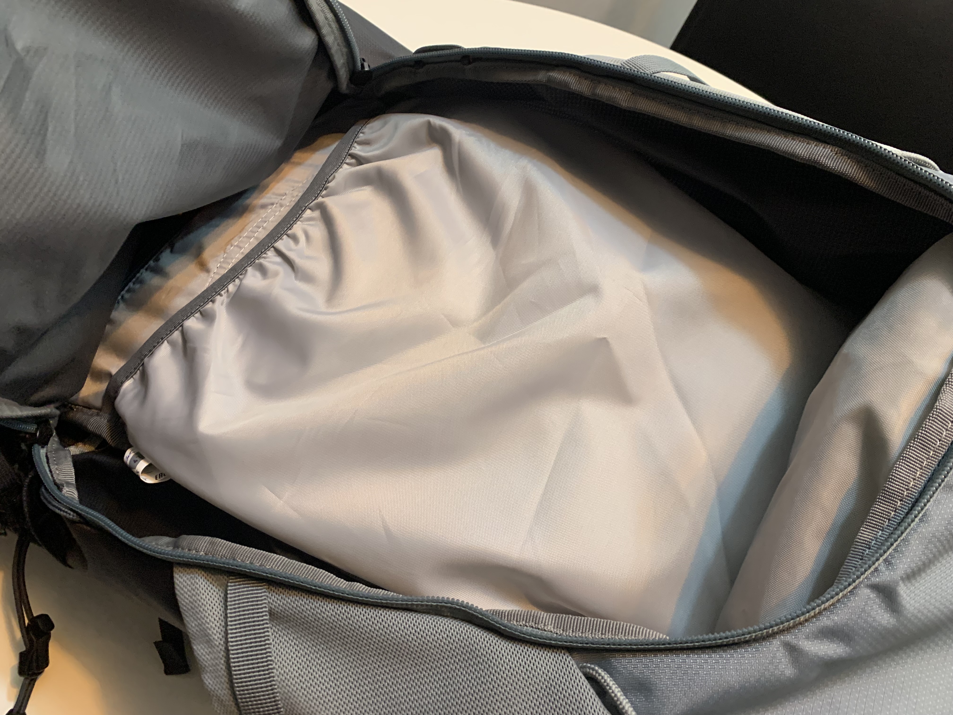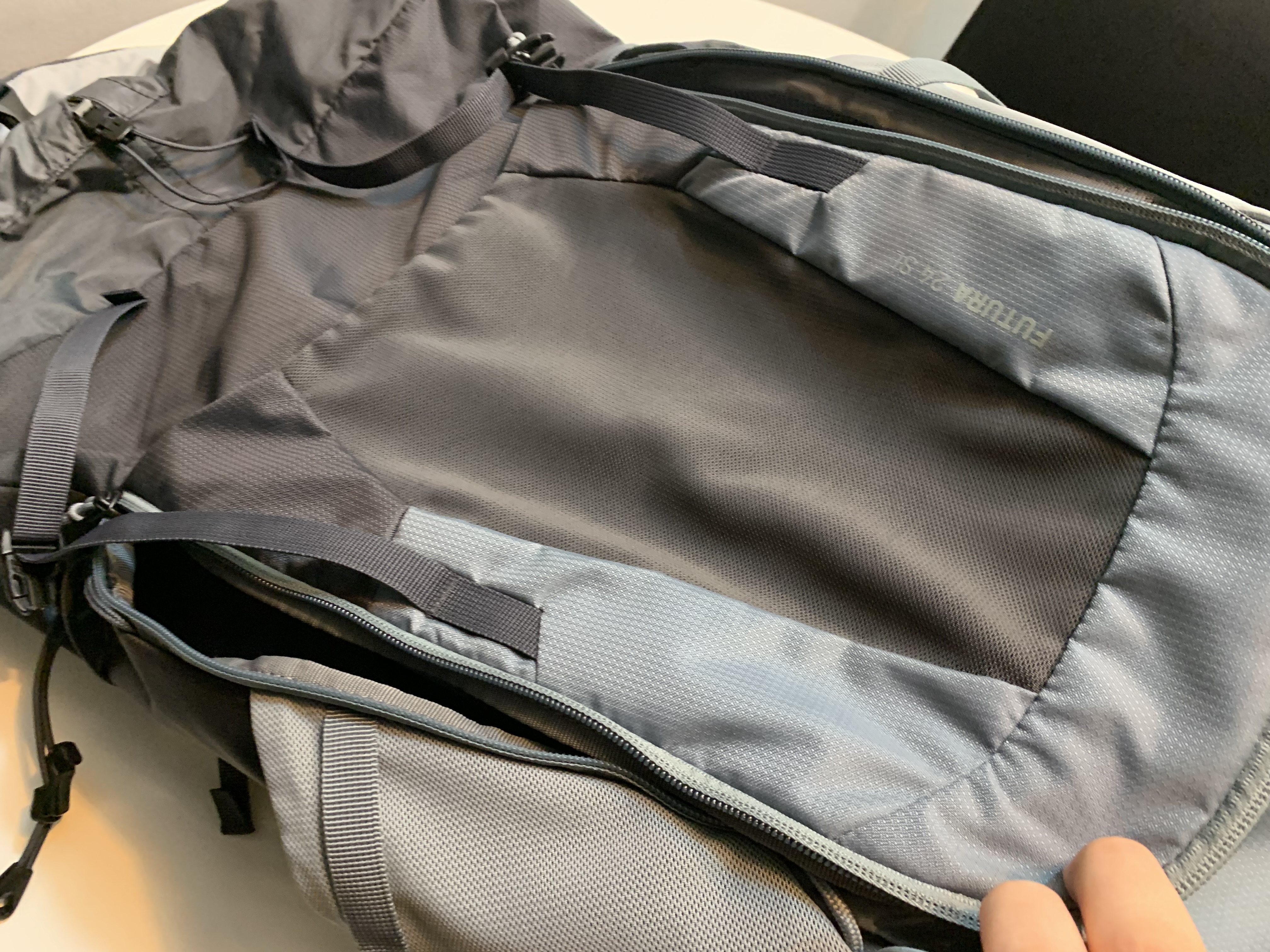 역시나 전면 개방 기능 덕분에 짐을 빡빡하게 채운 경우라도 어렵지 않게 가장 밑에 있는 물건을 위 사진과 같이 손쉽게 꺼낼 수 있습니다. 다른 기능은 몰라도 혹시 후드형 배낭을 찾으시는 분들은 전면 개방 기능이 있는 제품을 선택하시길 추천드립니다.