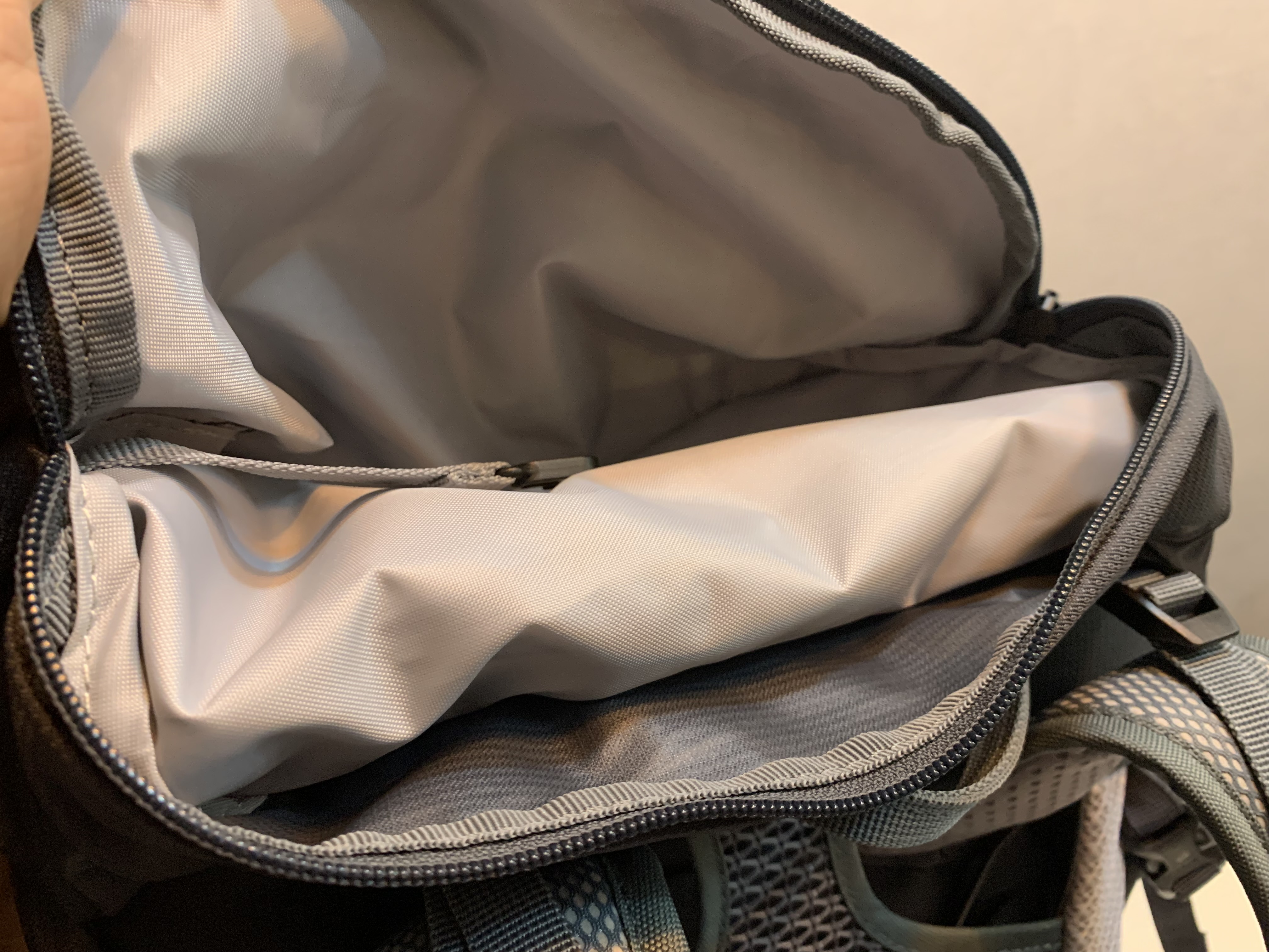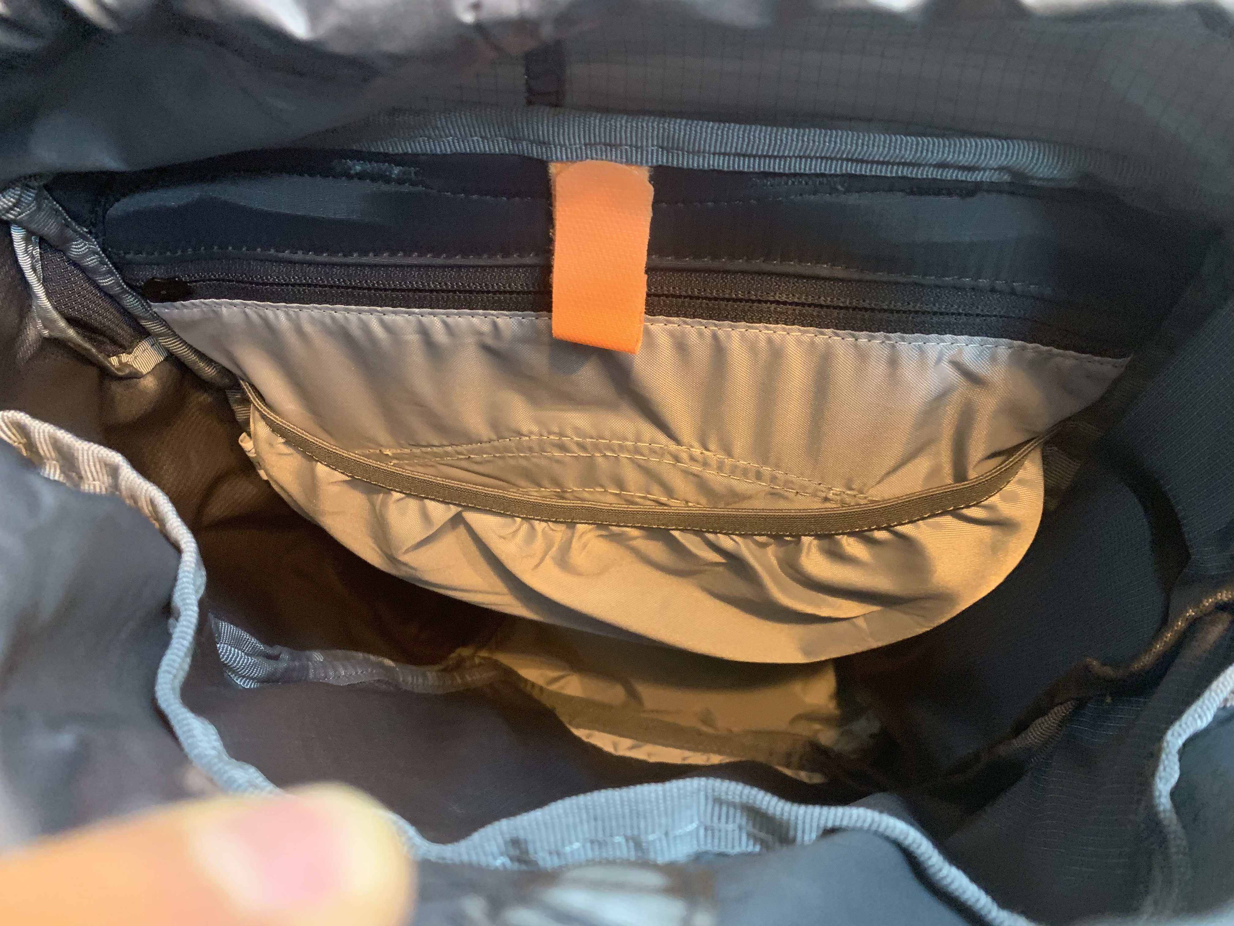 후드 안쪽에 있는 포켓입니다. 위의 겉면에 있는 곳보다는 더 내부에 위치하고 있어서 산행이 끝날 때까지 쓸 일이 없는 지갑이나 현금과 같은 귀중품을 넣기에 좋습니다. 제 개인적인 아쉬움은 그레고리 배낭과 같이 이 안쪽 포켓에 키클립이 있었다면 더 좋았을 것 같다는 아쉬움이 있습니다.