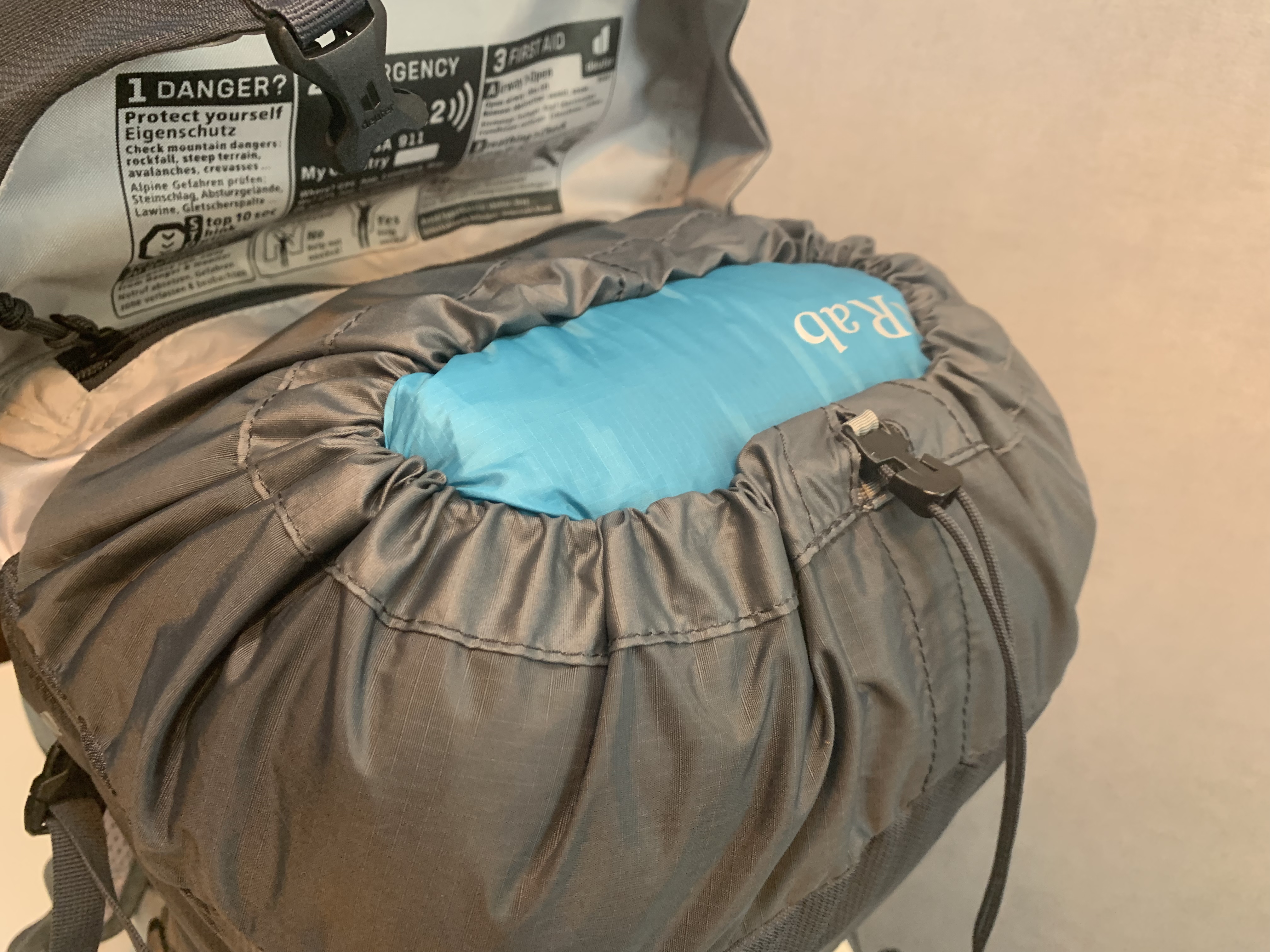 남는 공간에는 경량패딩 한 개를 넣고 스트링을 당기면 배낭이 꽉 차게 됩니다. 후드를 덮으면 가장 오른쪽에 있는 사진과 같이 되는데 보통의 24리터 등산배낭들 보다 크게 보이기는 합니다. 다만 이러한 경우는 극단적으로 패킹을 한 경우이고 만약 이렇게 빡빡하게 물건을 넣은 것에 더해서 무게까지 실린다면 배낭 자체에 무리가 갈 수 있기 때문에 실제로 이 정도로 짐을 넣고 다니지는 않습니다.