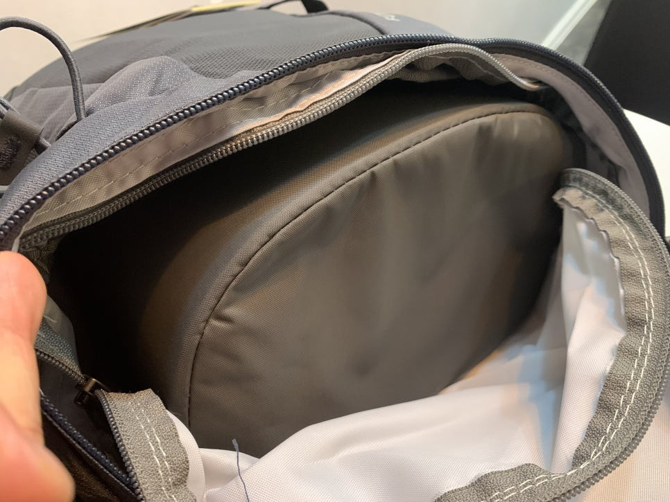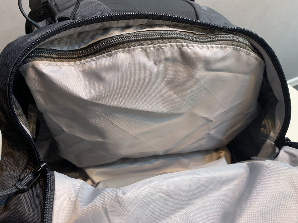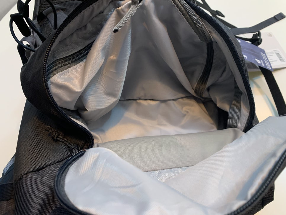 이건 배낭 하부의 지퍼를 열면 나오는 공간인데 경량의 인슐레이션 패딩을 넣고 다니기에 최적입니다. 그리 크지는 않으므로 동그란 모양으로 잘 접힌 옷을 넣으면 거의 꽉 차게 되지만 추가로 넥게이터나 장갑 정도는 충분히 넣을 수 있을 것으로 보입니다.