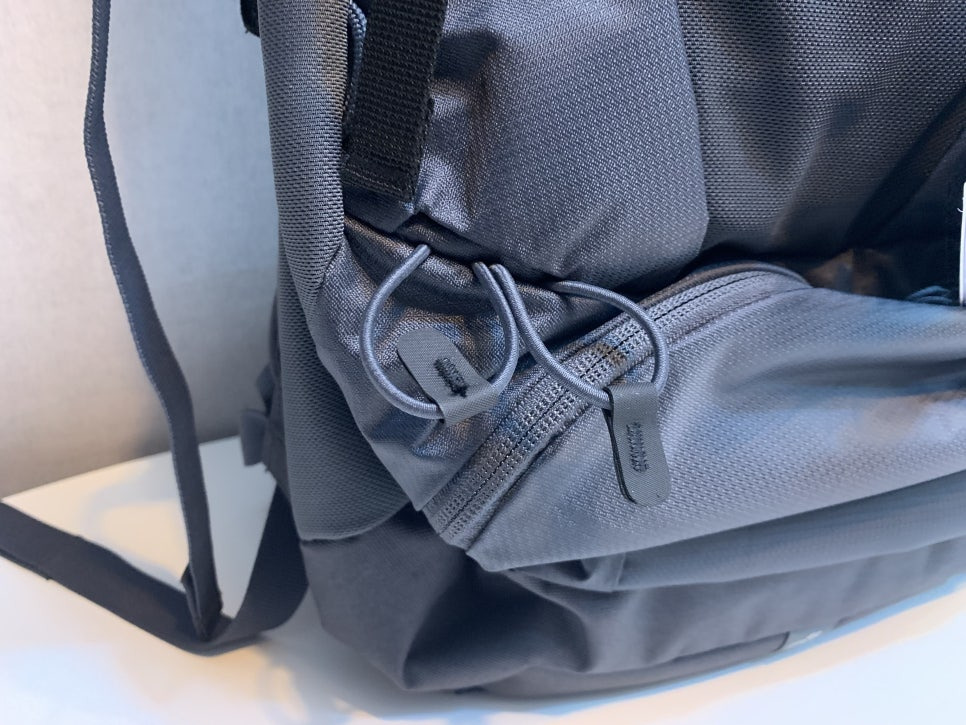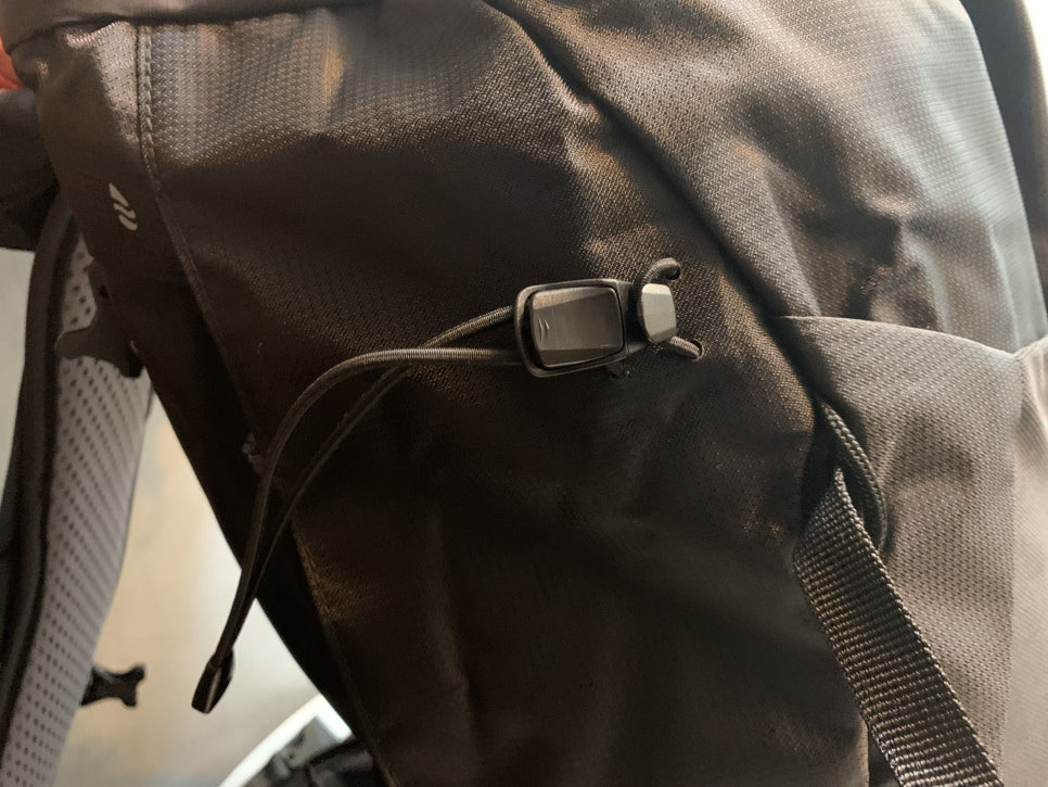그리고 버클 부분에는 벨트를 조이고 나면 남는 끈은 단정하게 정리할 수 있도록 밴드가 있습니다. 예전에 쓰던 등산 배낭 중 나름 유명한 브랜드의 제품이었음에도 이렇게 남는 선을 정리할 수 있는 그 어떤 장치도 제공되지 않아서 억지로 말아서 묶거나 했던 기억이 있네요. 배낭의 끈을 정리하지 않고 다니면 나뭇가지에 걸릴 수도 있고 저는 특히나 예민한 성격인지라 산행 중에 무언가 불편하거나 거슬리는게 있으면 오로지 등산에 집중이 안되기 마련입니다. 어찌보면 이런 사소한 것이 당연해 보일지 몰라도 없으면 정말 아쉬운 부분이 아닐까 합니다.