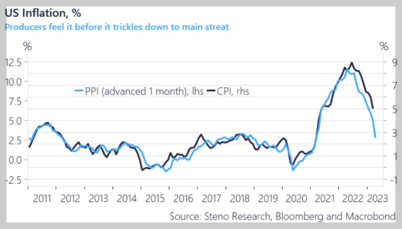 생산자물가지수는 CPI의 선행지표의 역할을 합니다. PPI의 지수가 오르게 되면 자연스럽게 공급자는 이러한 비용 상승을 소비자에게 전가하므로 CPI 지수의 상승을 이끌게 됩니다.