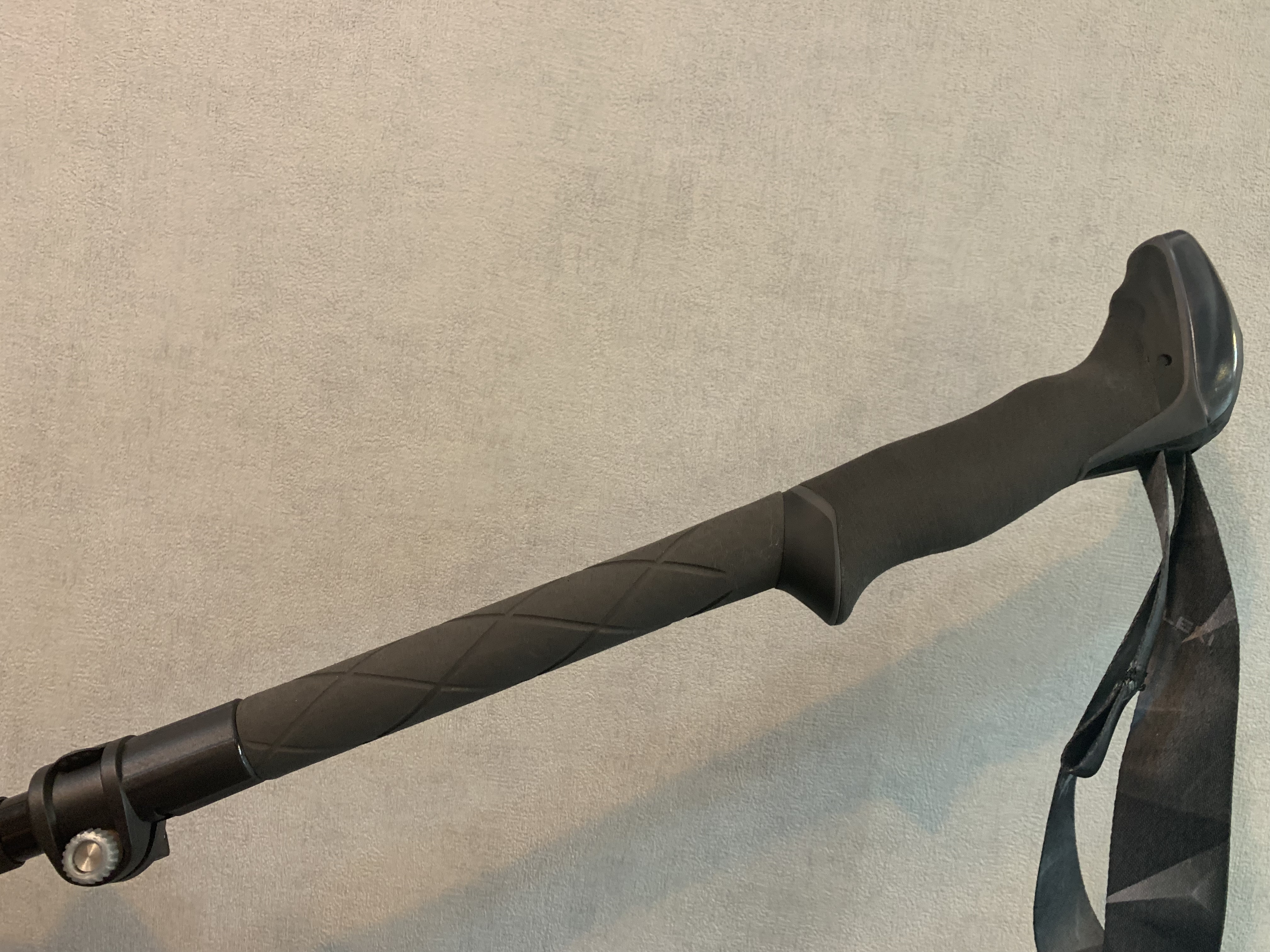 아르곤 에어 그립입니다. 하산길에 폴을 수직으로 잡는 방식이 일반적인데 이 그립의 상단을 손바닥으로 감싸 쥐듯이 잡으면 내리막길에서 좀 더 안정적으로 편하게 스틱의 도움을 받을 수 있다고 들은 것 같습니다. 실제로 산에서 테스트해봤을 때 그립의 헤드 부분이 넓어서 마치 ㄱ자로 된 지팡이를 쥐고 내려가듯이 편한 느낌이 들었습니다.