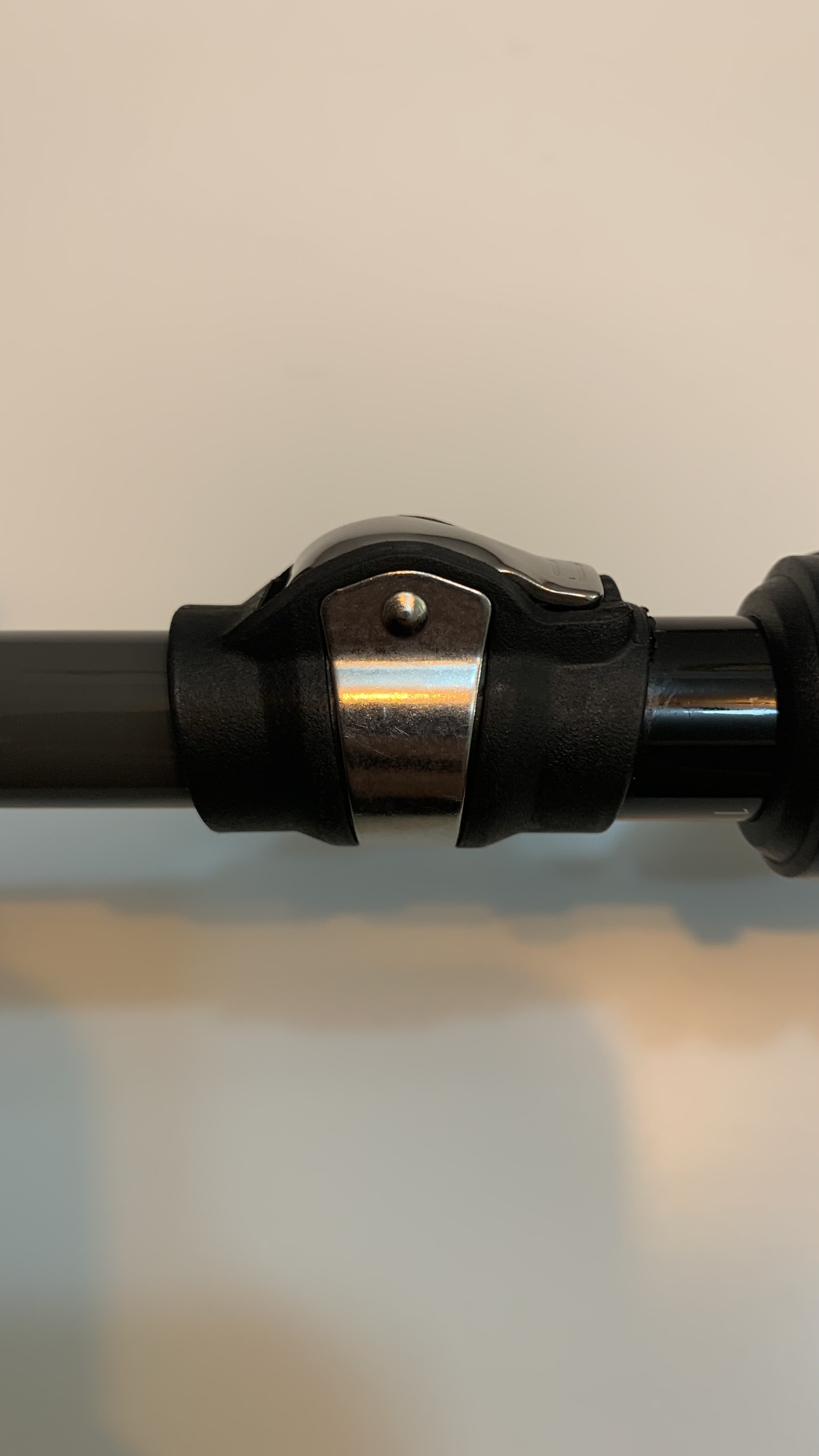위 사진과 같이 폴을 일자로 고정시켜 110cm로 맞춰진 상태입니다. 이 제품에서 사용 가능한 최단 길이가 되는 것입니다. 이 상태로 바로 사용이 가능하고 추가적으로 더 길게 쓰고자 하시면 상단에 있는 레버를 풀어서 길이를 맞추시면 됩니다.