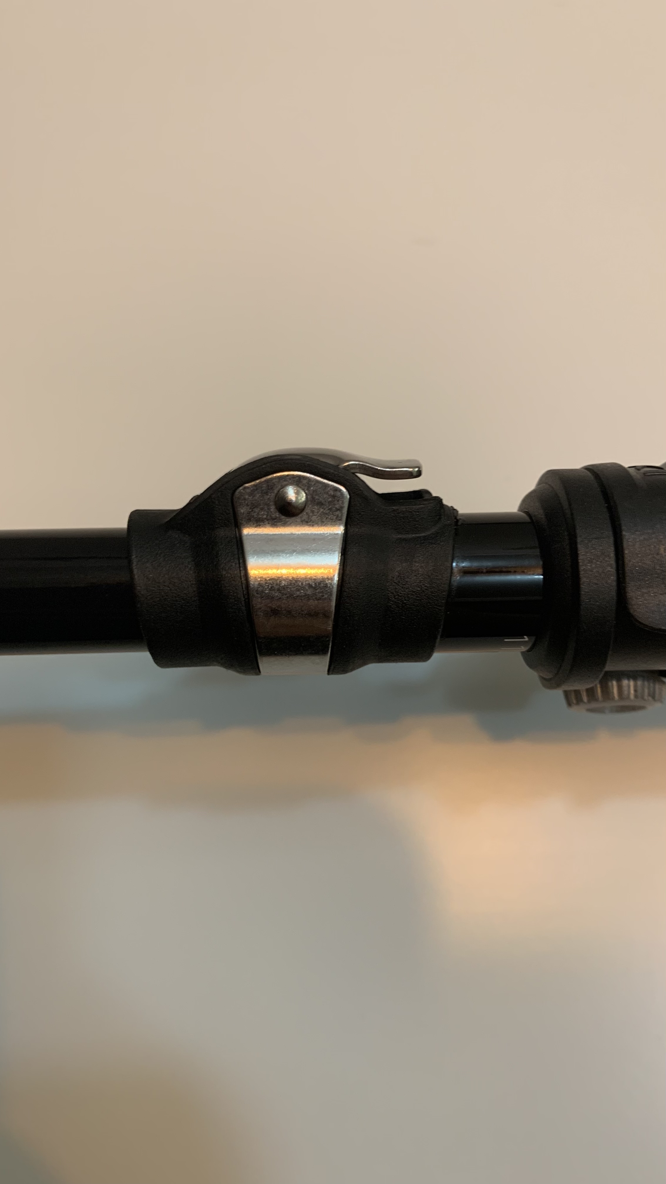 위 사진과 같이 폴을 일자로 고정시켜 110cm로 맞춰진 상태입니다. 이 제품에서 사용 가능한 최단 길이가 되는 것입니다. 이 상태로 바로 사용이 가능하고 추가적으로 더 길게 쓰고자 하시면 상단에 있는 레버를 풀어서 길이를 맞추시면 됩니다.