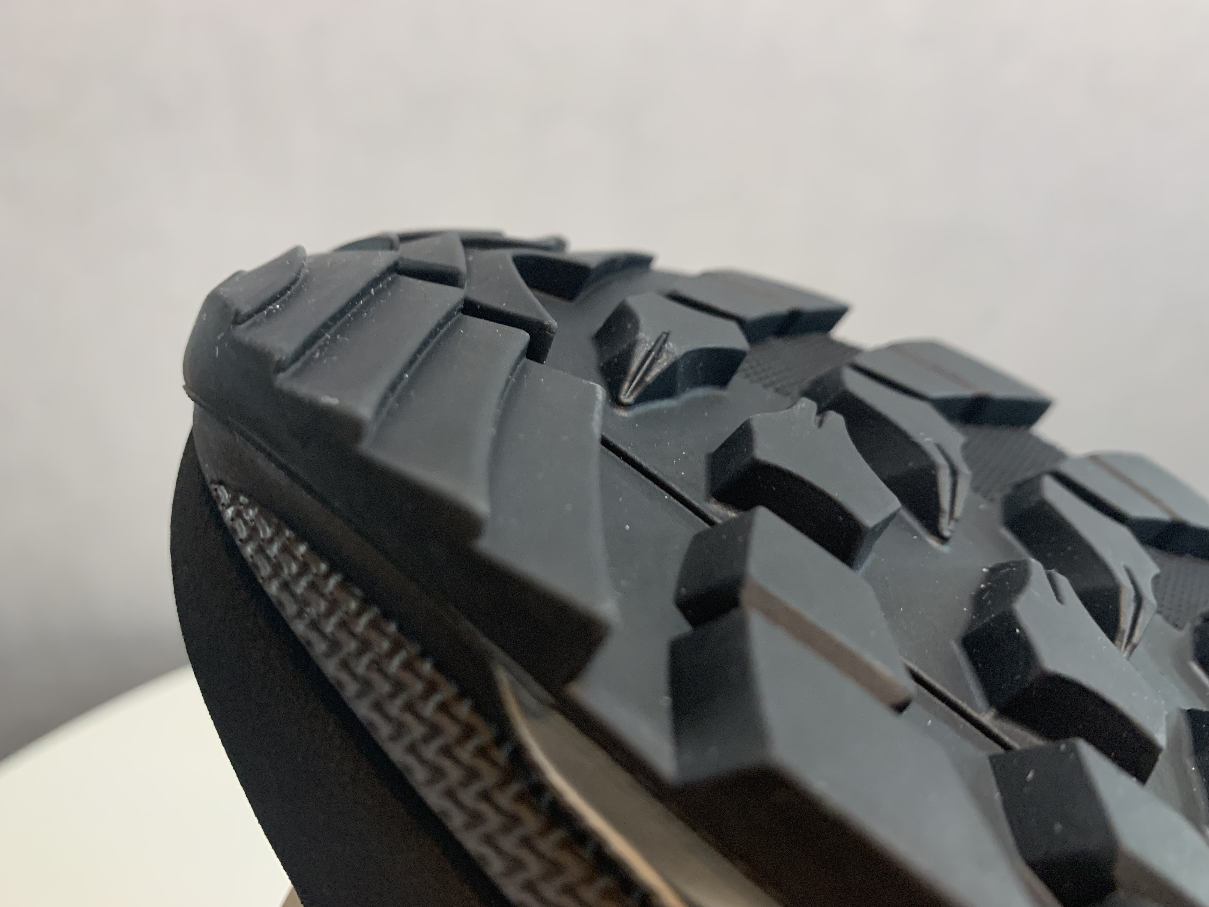 특히 창의 앞부분과 뒷부분이 좀 특이하게 생겼는데 빗금과 같이 생긴 패턴 덕분에 오르막을 오르기 위해 발을 내디딜 때 뒤로 밀리지 않게 되고, 비슷한 원리로 내리막을 위한 트랙션 처리가 되어있어 하산 시에도 발이 앞으로 미끄러지지 않는다고 합니다.