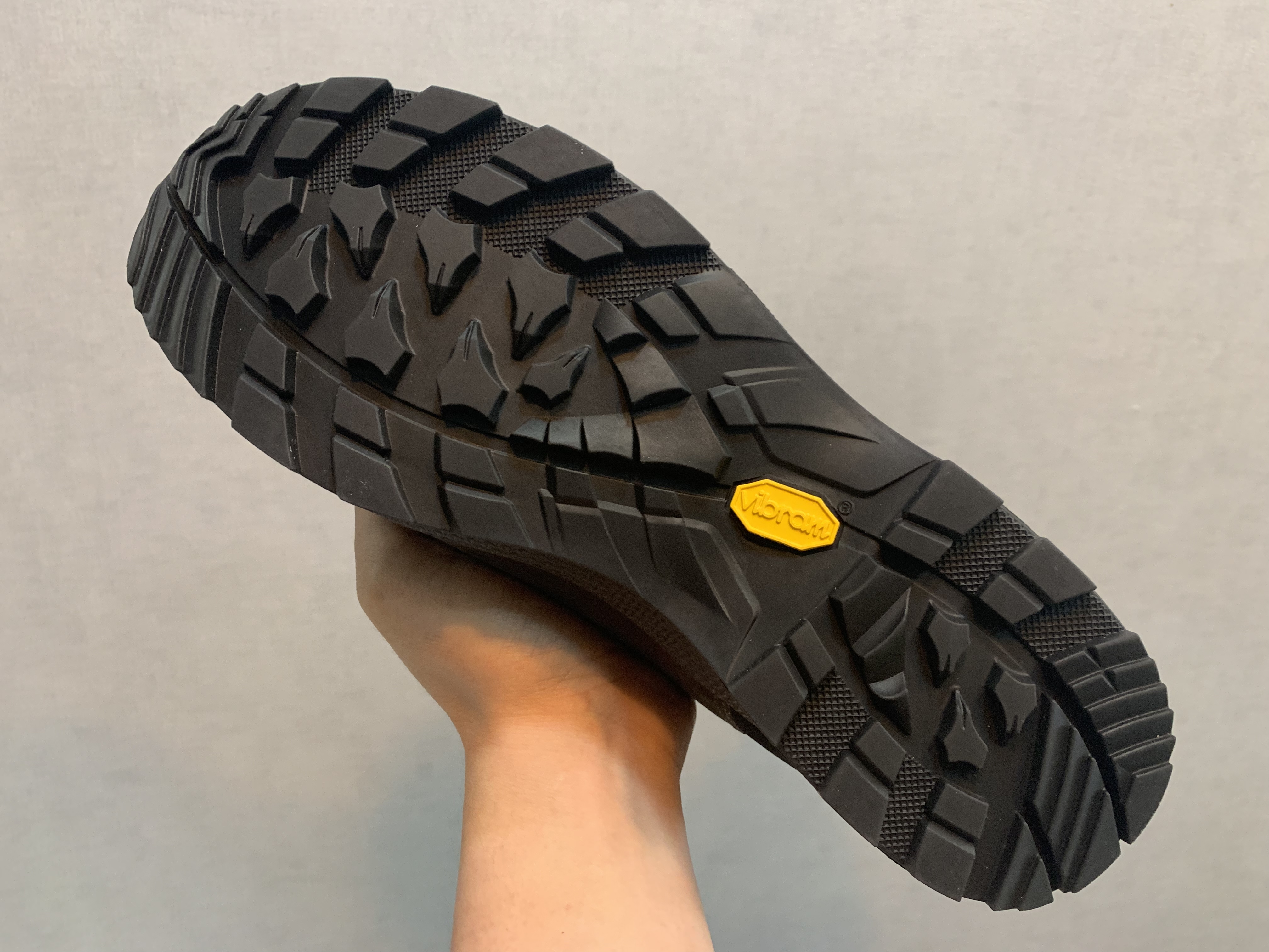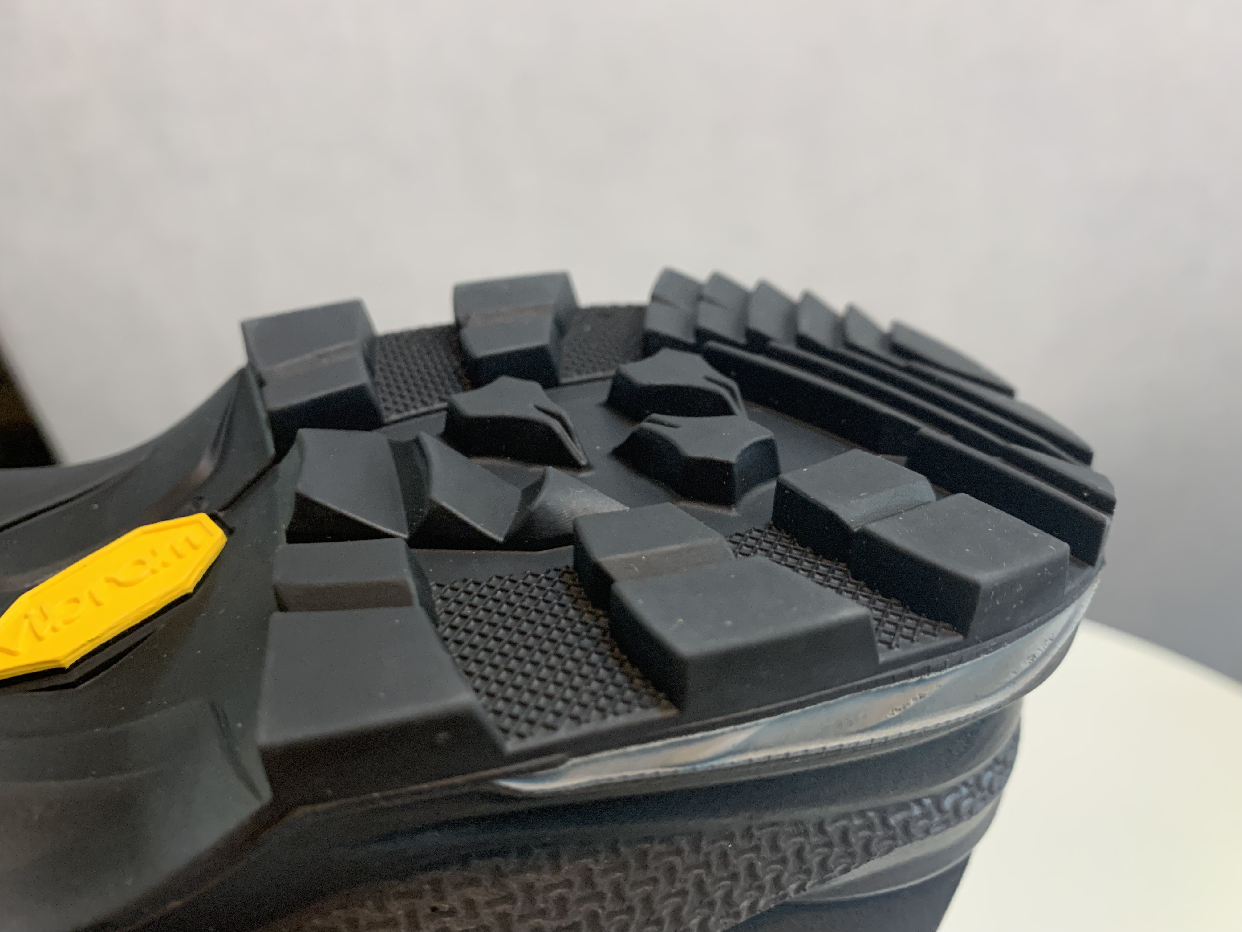 아웃솔은 비브람의 APPTRAIL이 사용되었습니다. 일단 보기에도 무늬 사이에 간격이 넓어서 돌이나 기타 이물질이 잘 끼지 않는다는 특징을 가지고 있다고 합니다. 사실 비브람 아웃솔 중 좋은 접지력을 가지고 있다는 메가그립에 비해서도 접지력이 훌륭하다고는 하는데 저희는 모두 그런 제품을 착용해 본 경험이 없어서 정확히 어떤 아웃솔이 더 낫다는 평가를 하긴 어렵지만 와이프 말로는 암릉 구간을 지나도 미끄럼 없이 잘 붙는 느낌을 받았다고 합니다.