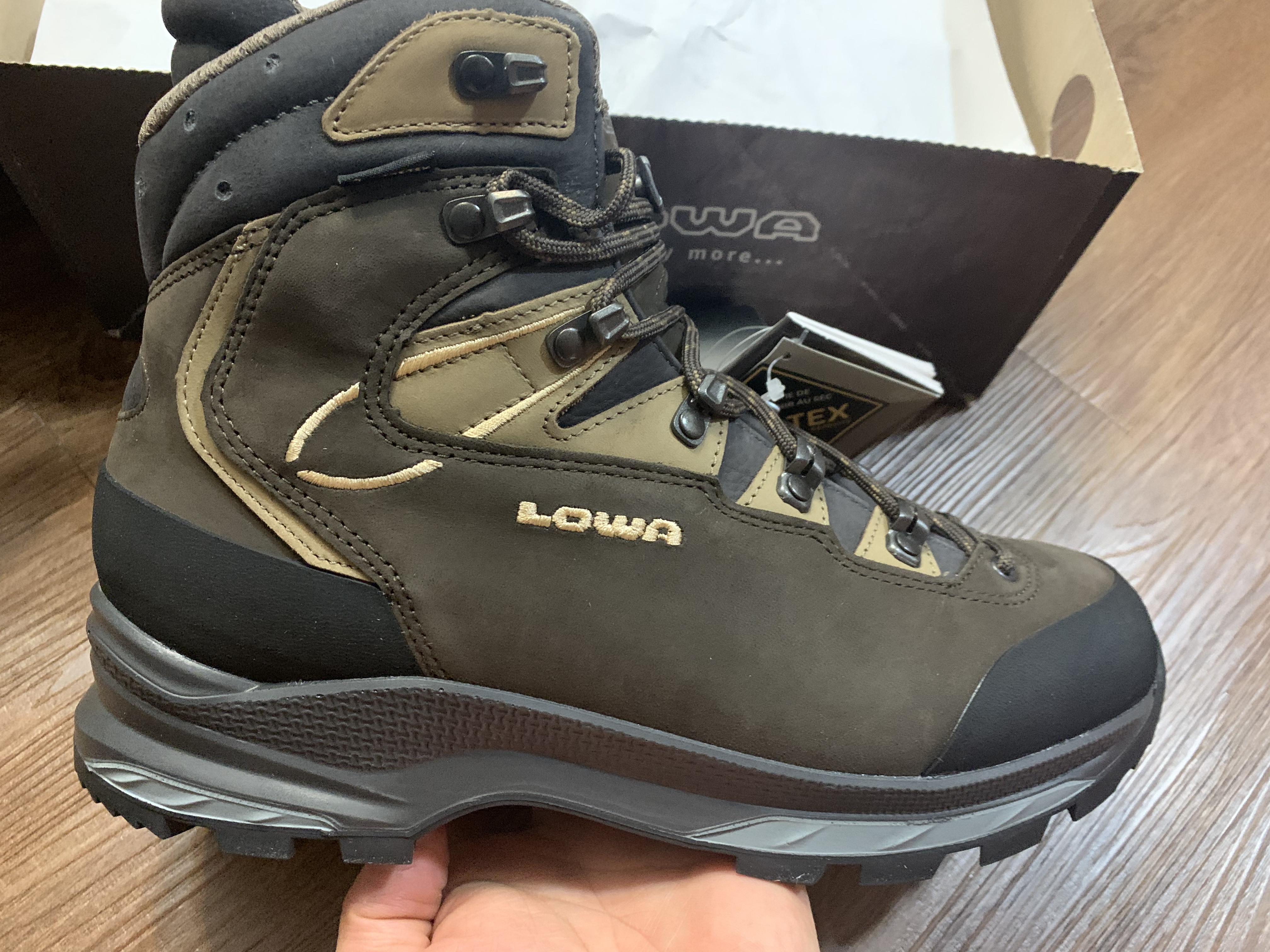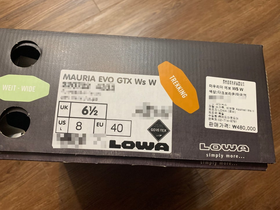 드디어 상자를 열고 처음 마주하는 로바의 제품입니다. 처음 느꼈던 점은 화면보다 디자인이 더 괜찮다는 것이었습니다. 개인적으로 중등산화라고 하면 잠발란의 토페인 같은 다소 투박한 이미지가 가장 먼저 떠오르게 되는 편견 아닌 편견이 있었는데, 까미노도 그렇고 마우리아도 디자인이 상당히 나쁘지 않다는 것을 느꼈습니다. 물론 앞으로 이 신발을 신게 될 주인도 그렇게 느꼈고요.