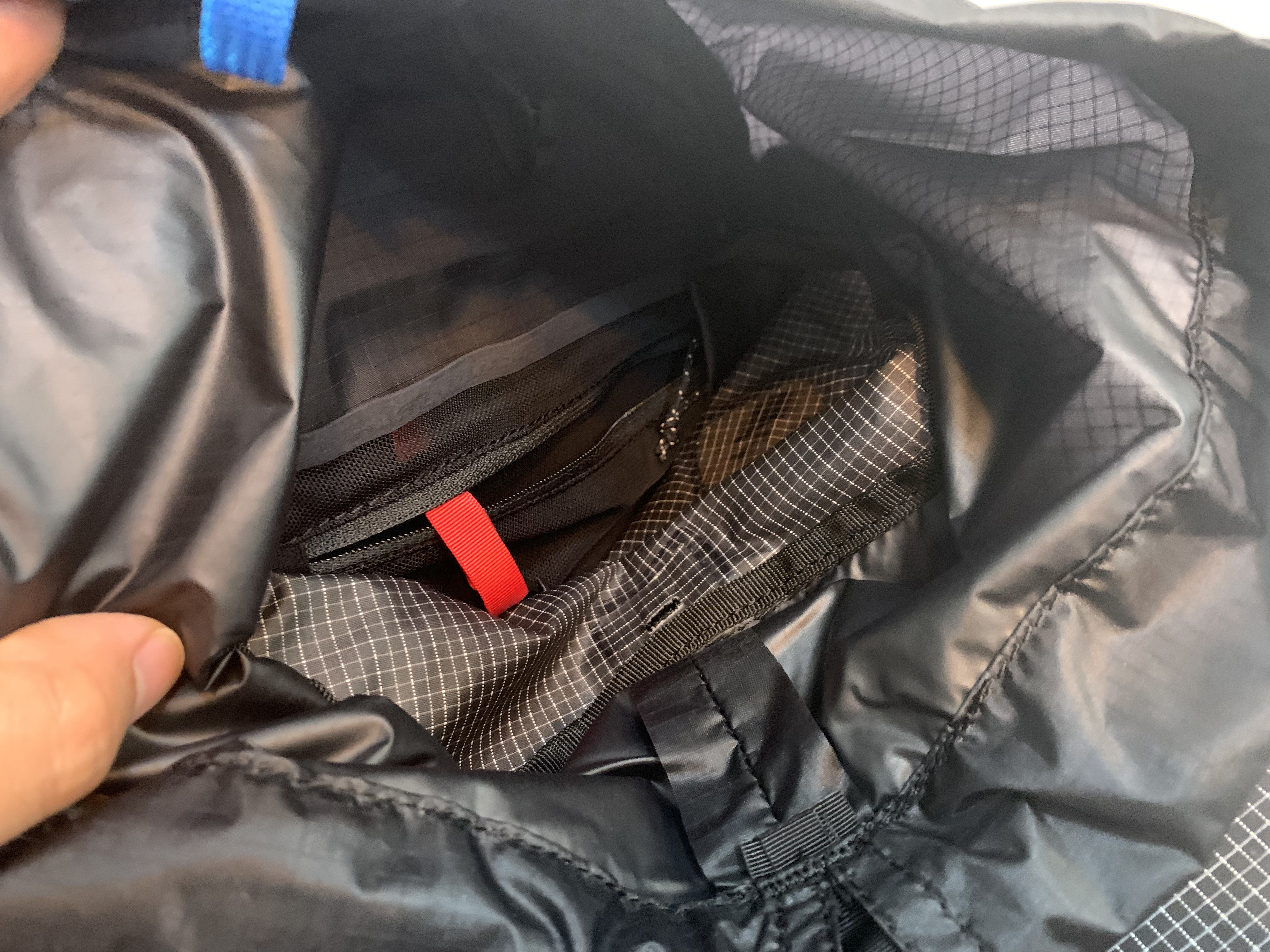 대신에 역시 지퍼 포켓도 더 넓어졌습니다. 구형은 간신히 쫙 늘려서 제 휴대폰을 넣어야 했거든요. 아무튼 이 크고 넓어진 지퍼 포켓에 스마트폰을 넣고 다니면 될 것 같았습니다. 어깨끈 연결부에 있는 탄성 포켓 두 개를 제외하면 전반적으로 수납이 상당히 많이 개선되었다는 것을 느낄 수 있습니다.