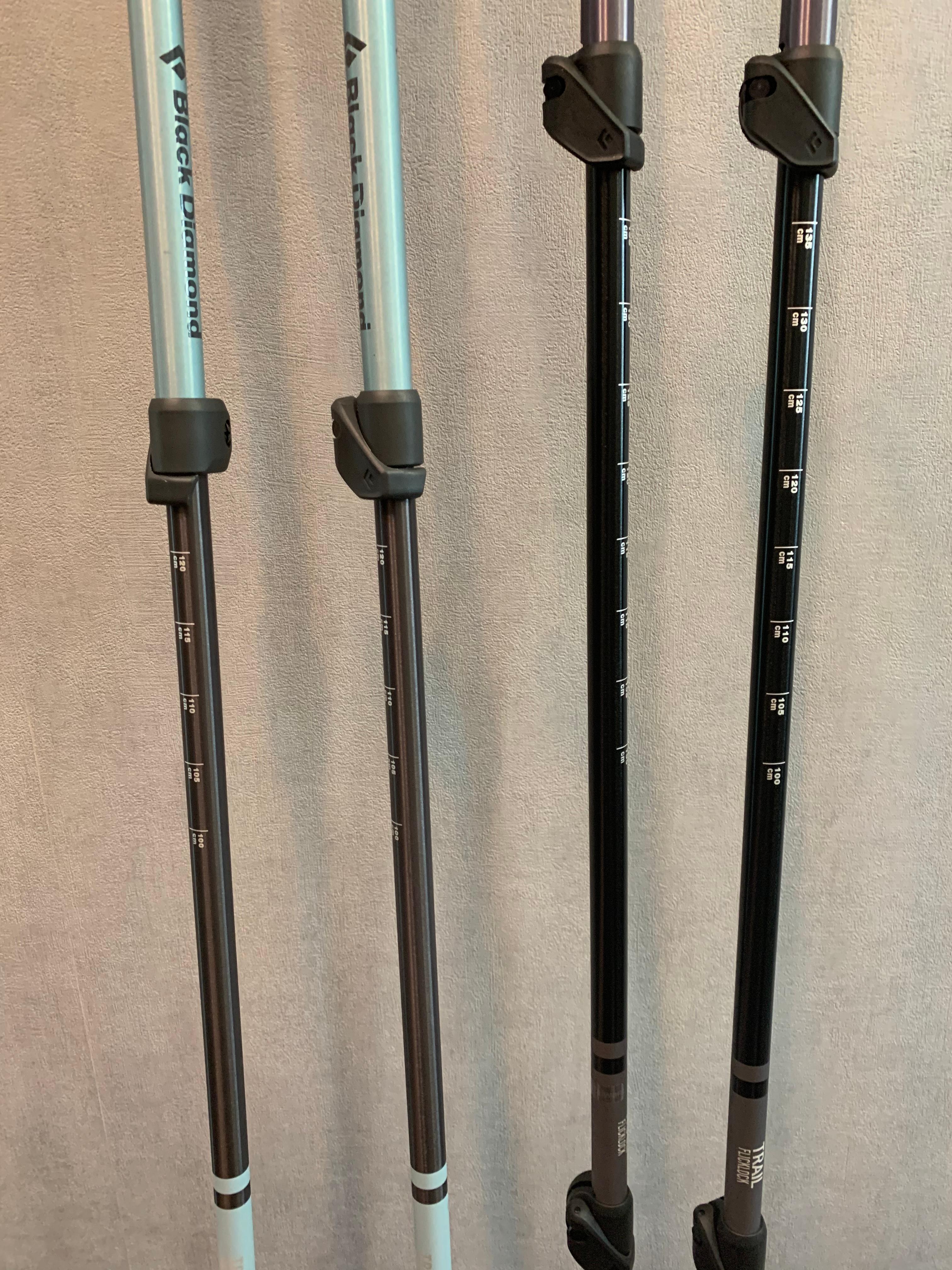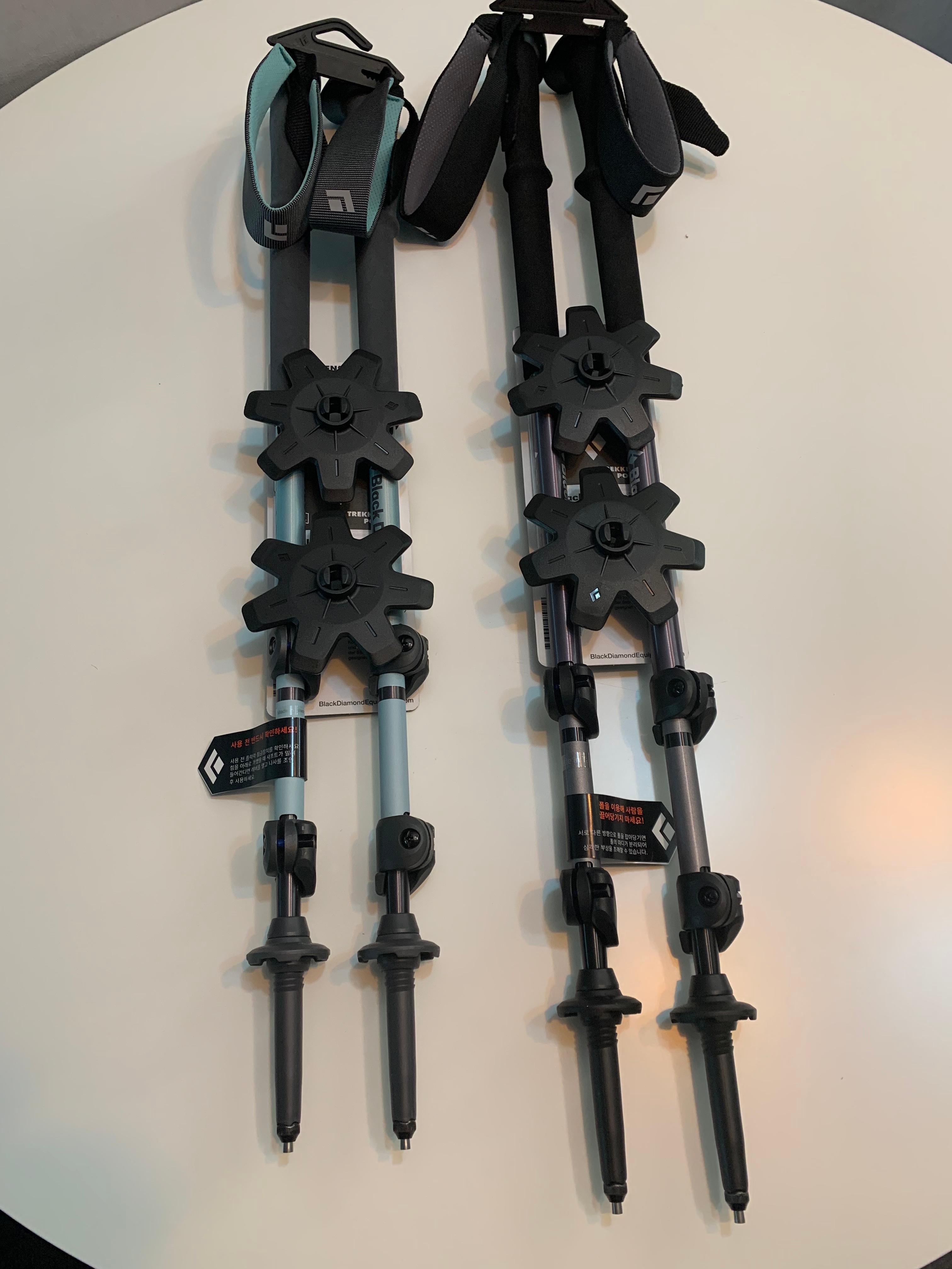 사실 비교할 것이라고 해봐야 길이 정도만 될 것 같습니다. 한 짝당 무게 차이는 재원상 3g으로 큰 차이는 없습니다. 한 가지 좀 새로웠던 점은 폴을 구성하는 작대기가 모두 사진과 같이 분리가 된다는 점이었습니다. 사용 중에 가장 많은 손상과 충격을 받는 부분이 아무래도 하단이 아닐까 생각하는데 이렇게 쉽게 분리가 되면 굳이 A/S를 의뢰할 필요 없이 블랙다이아몬드에서 판매하는 하단 파츠를 구입해서 직접 교체할 수 있을 것 같습니다.
