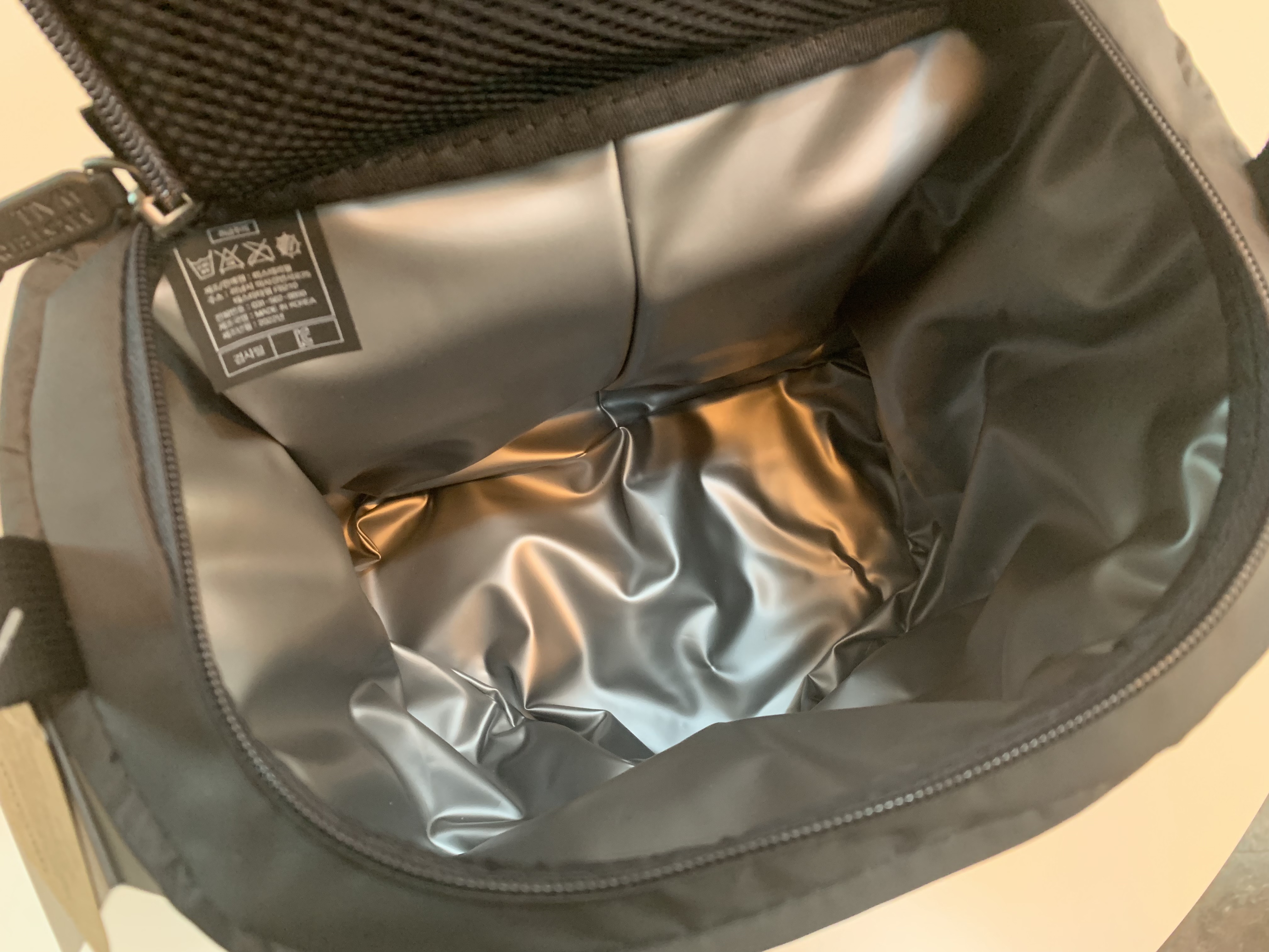 표면이 제법 단단한 상태로 되어있습니다. 물론 손으로 누르면 들어가긴 하지만 배낭의 모양을 잡거나 또는 디팩 안에 내용물을 가득 채운 상태로 손잡이를 잡고 이동해도 모양이 흐트러지거나 하지는 않을 정도의 강도는 가지고 있습니다.