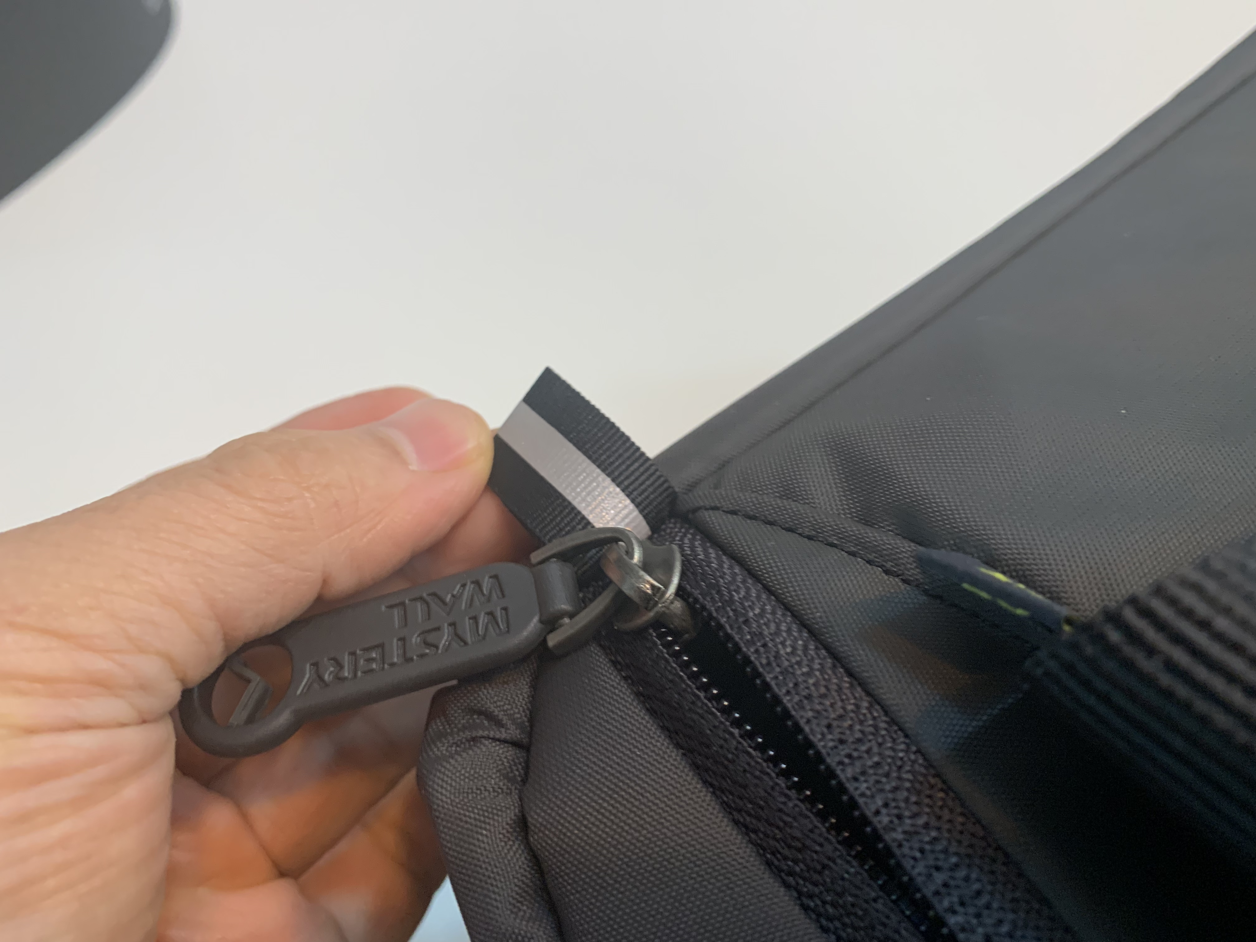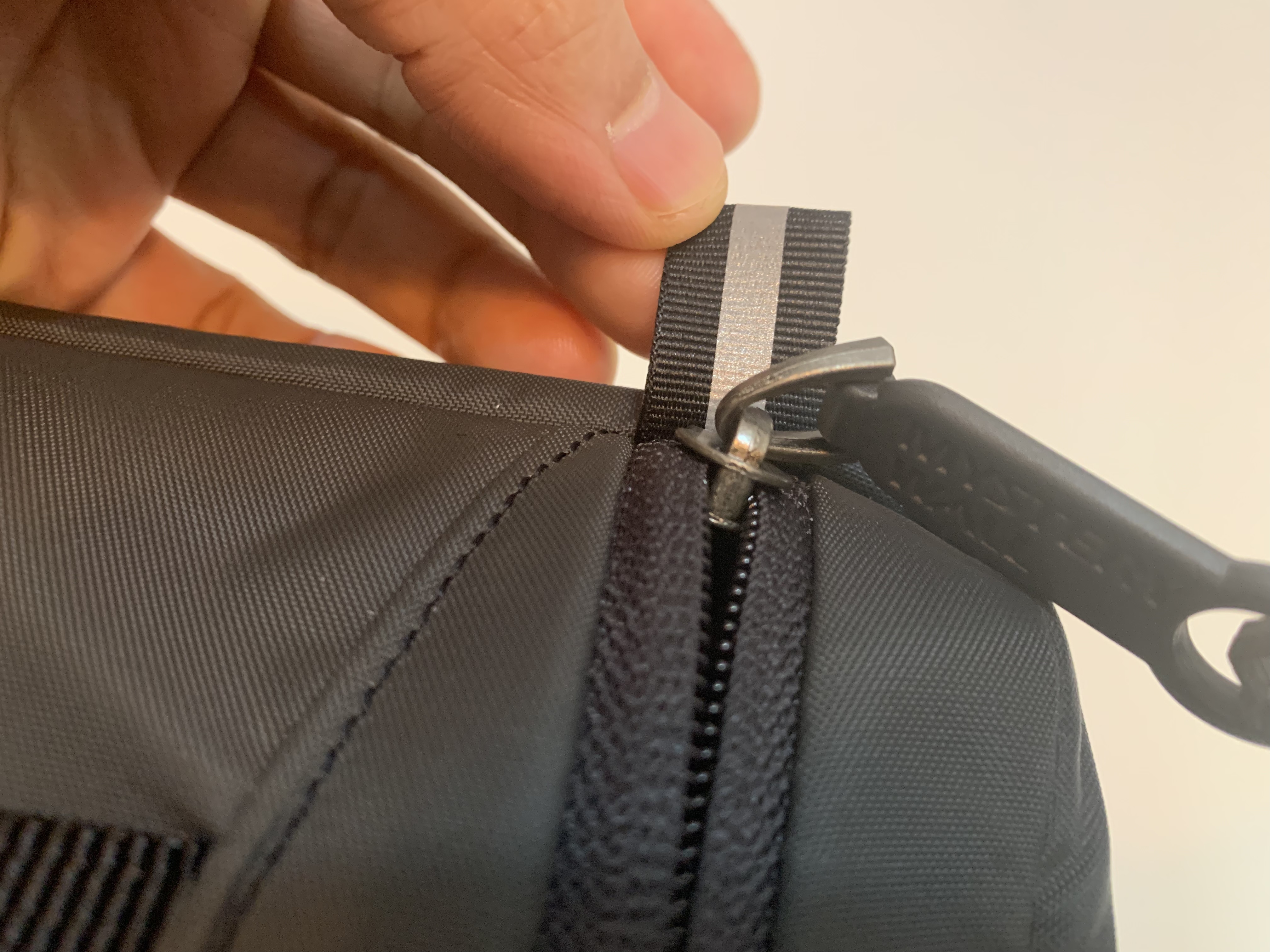 두꺼운 지퍼는 한 손으로 열고 닫기가 잘 안되기 마련인데 그렇다고 막상 양손을 사용해서 어디를 잡으려 해도 잡고 지퍼를 채울 곳이 없습니다. 그래서 양 끝에 위 사진과 같은 손잡이를 만들어 두었습니다.