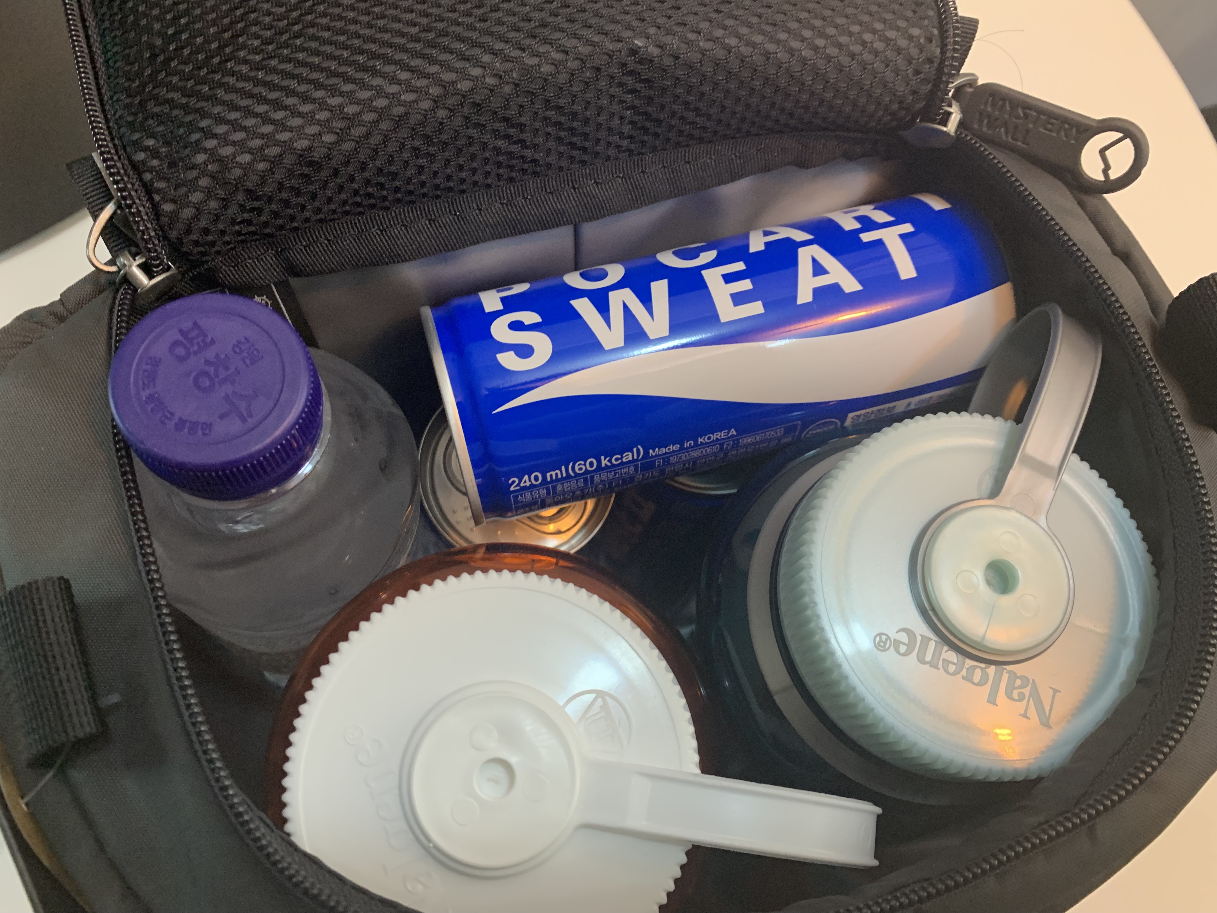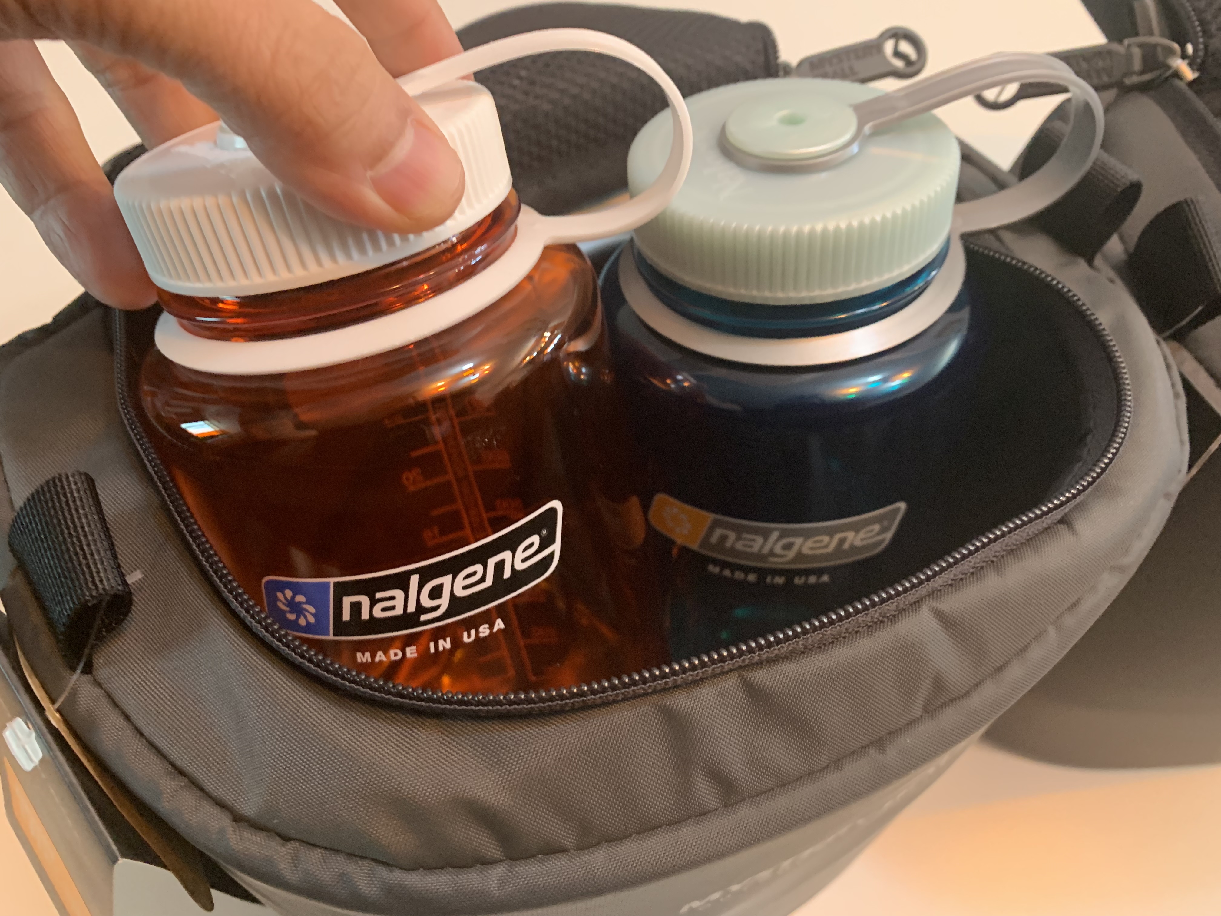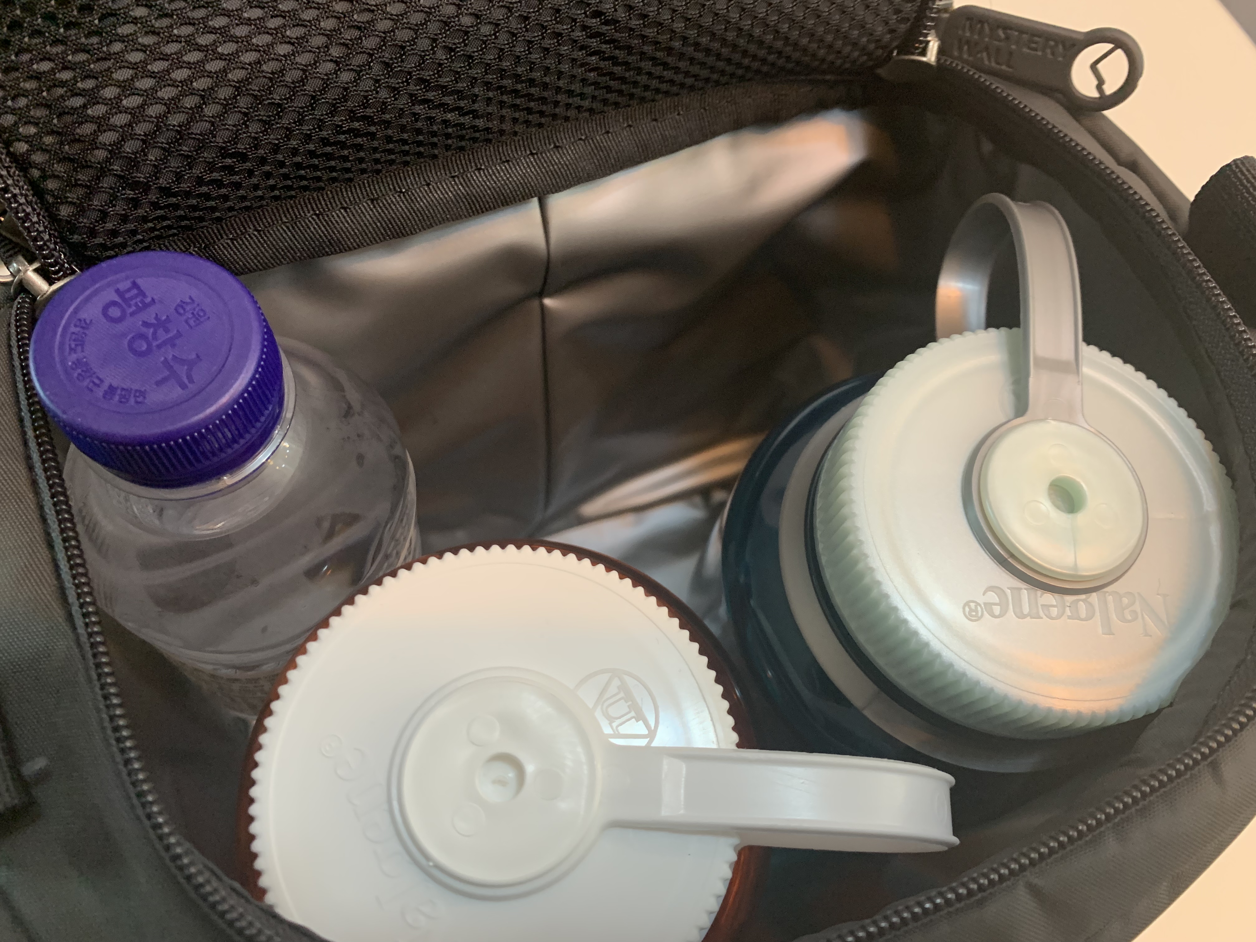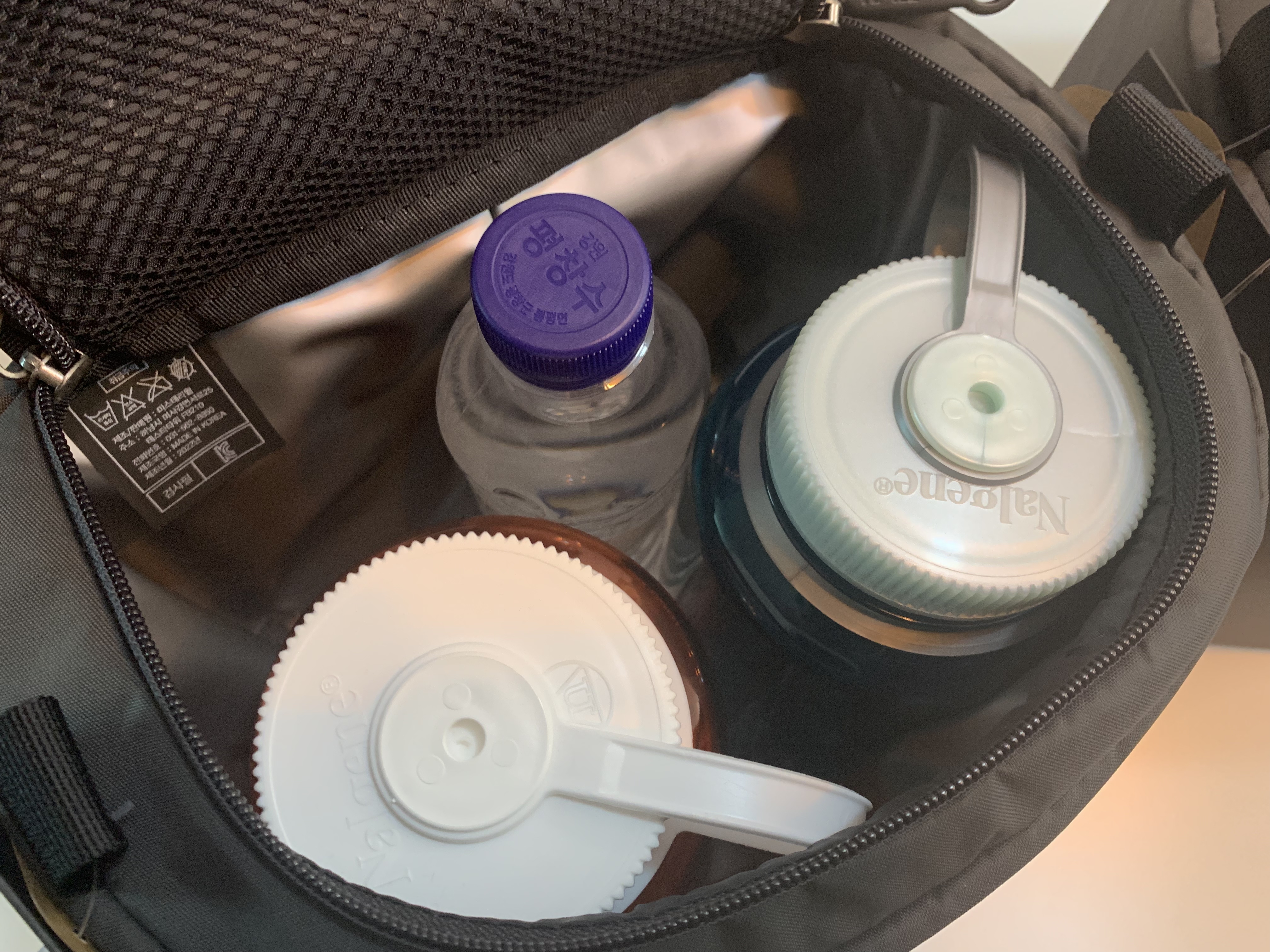 일단 제가 가지고 있는 날진 1리터 물병을 넣어봤습니다. 2개는 넉넉하게 들어갑니다. 11월 초 까지만 해도 물을 상당히 많이 마시는 편이라서 많이 들고 다닐 때는 혼자서 3리터도 챙기는 편입니다.