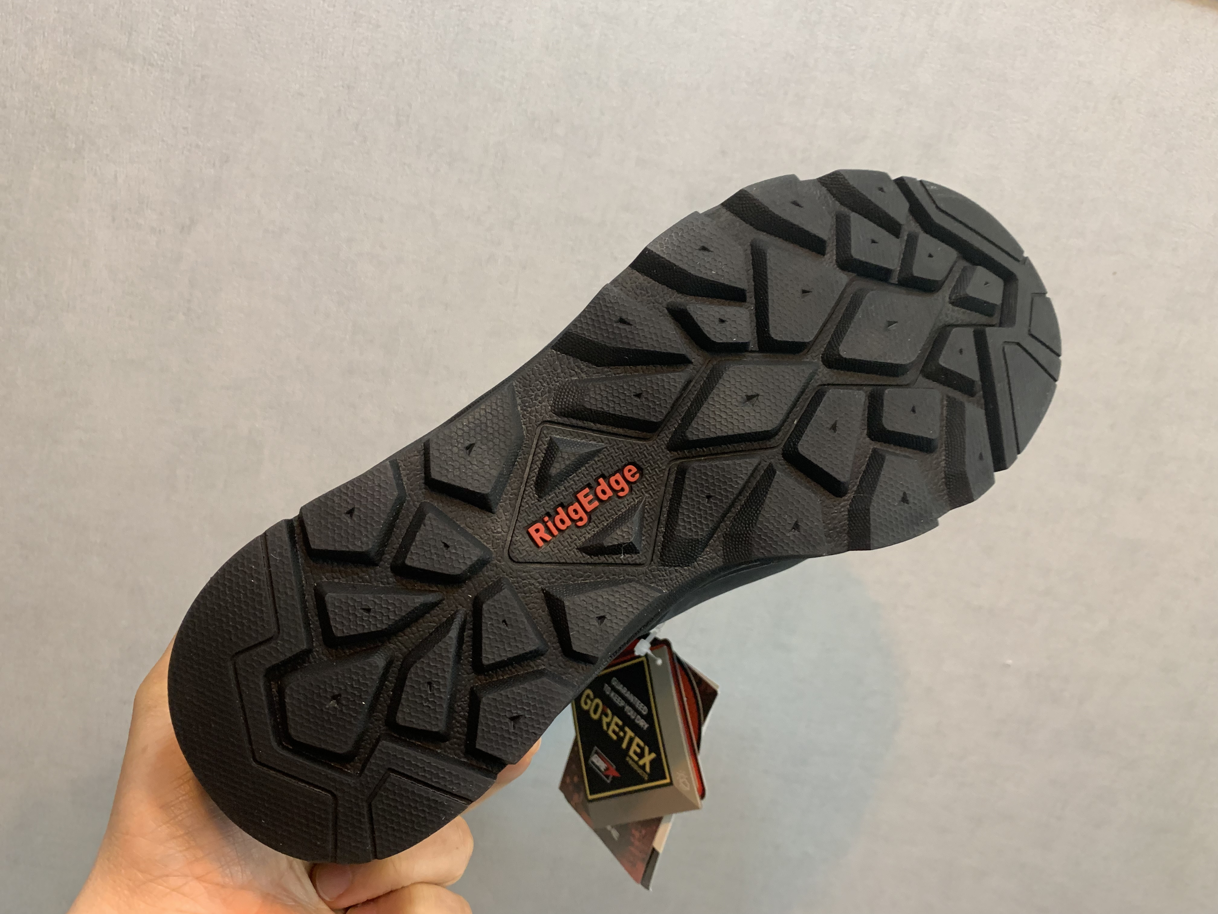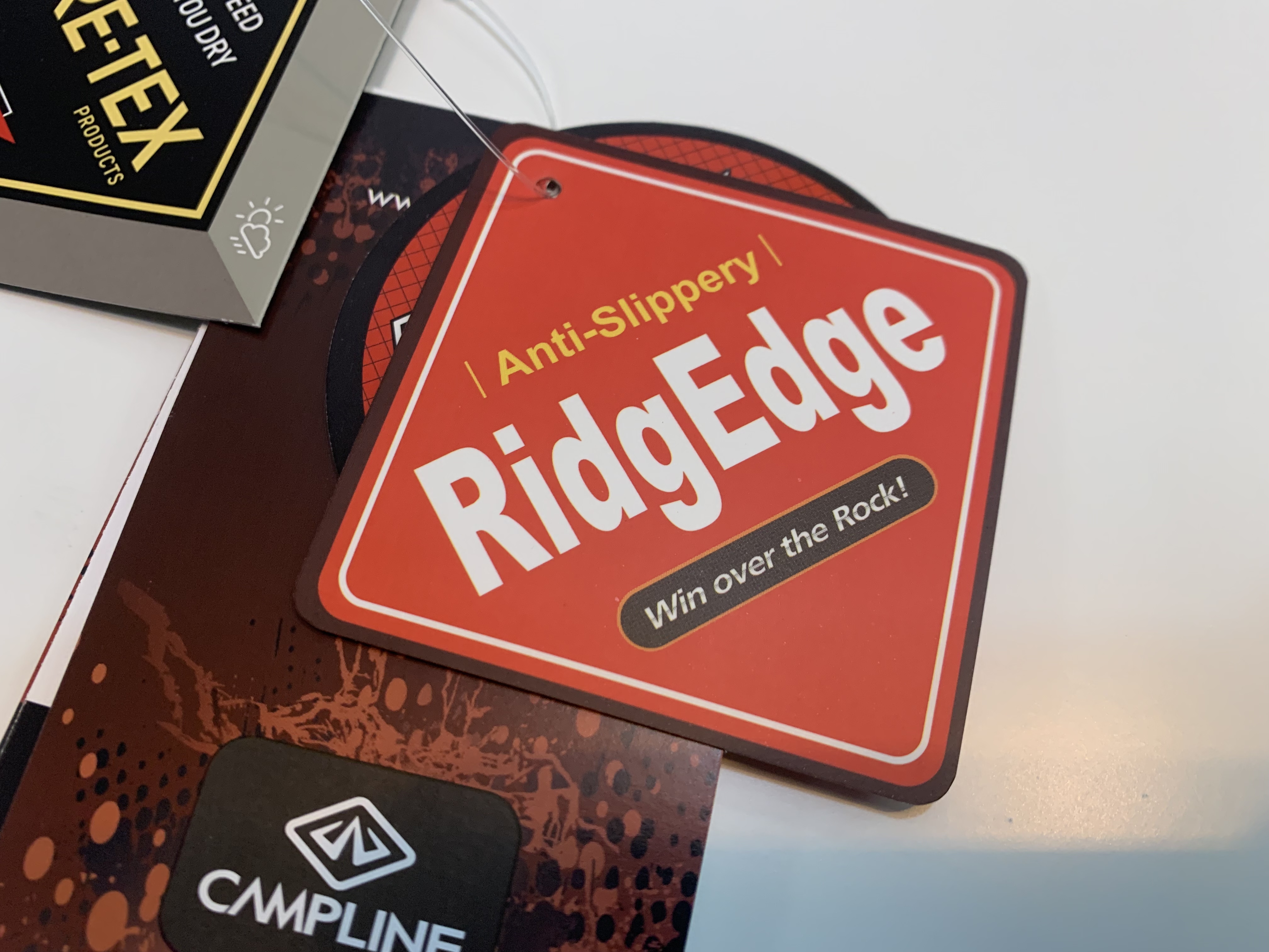 조금 값이 나가는 등산화들은 이탈리아의 비브람사에서 출시하는 밑창을 쓰기 마련인데 캠프라인은 자체 개발한 릿지엣지 창을 사용합니다. 대표적으로 북한산이 될 수 있을 것 같은데 화강암이 많은 우리나라 산지에서 발군의 성능을 낸다는 아웃솔입니다. 저는 아직 경험해 보지 못했지만 실제로 후기를 보면 확실히 바위가 많은 암릉 구간을 지날 때 준수한 접지력을 보인다고 합니다.