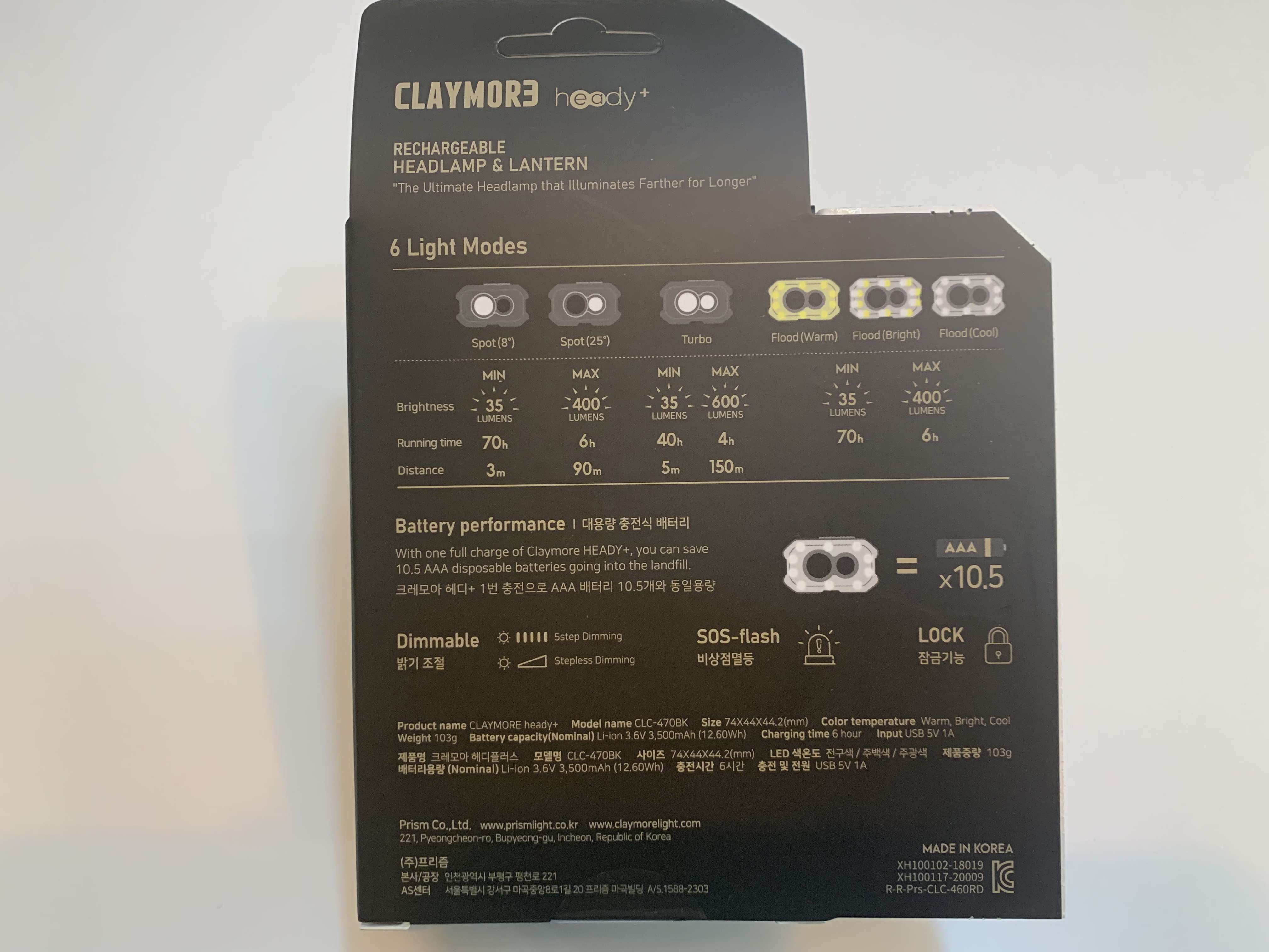 특히 600lm라는 차고 넘치는 밝기, 최대 밝기에서 완충 시 4시간이라는 사용 시간 그리고 무엇보다 클립을 사용해서 배낭에 끼울 수 있고 고리를 활용해서 텐트에 걸면 램프 역할도 충실히 할 수 있다는 확장성이 가장 큰 장점이 아닐까 합니다.