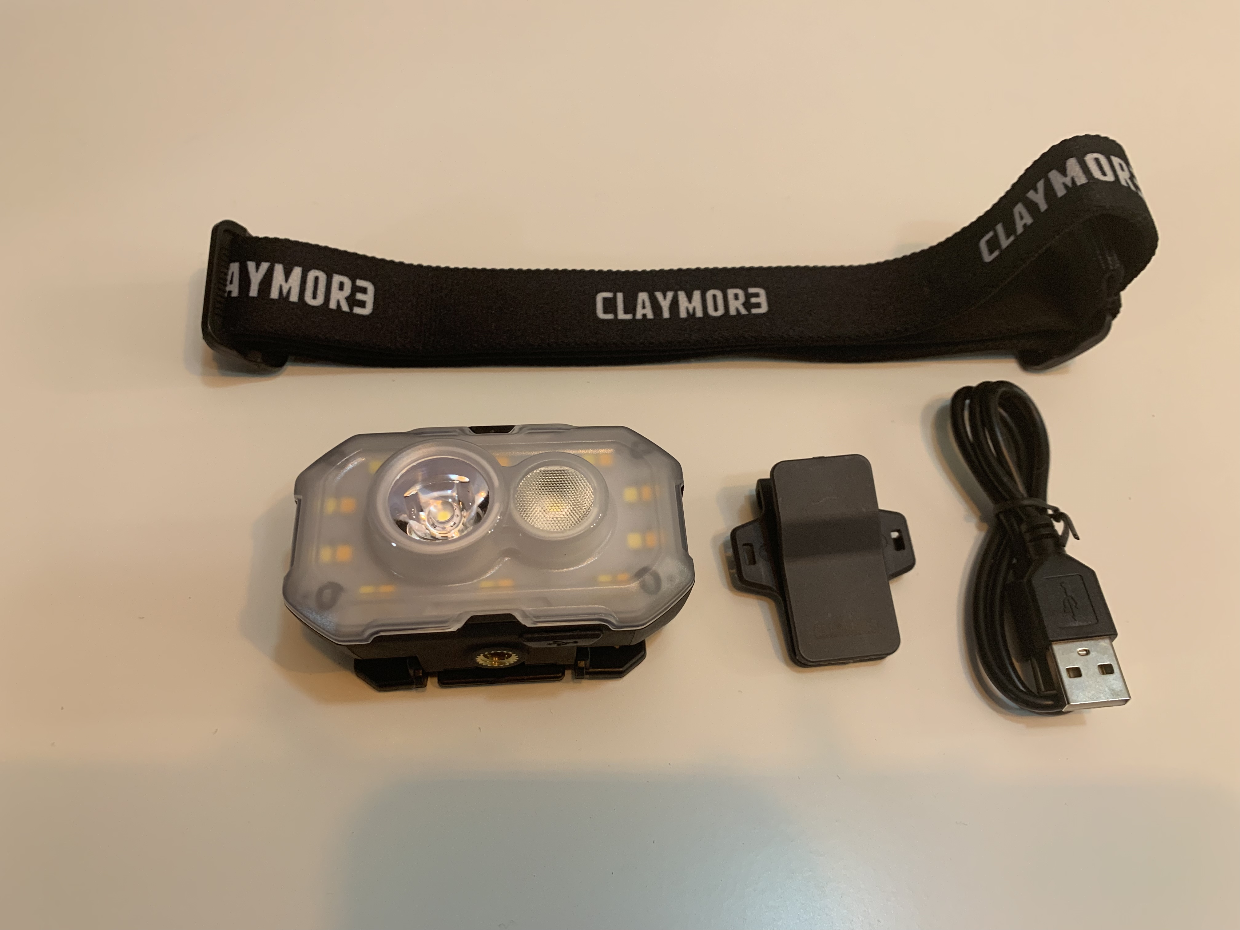 파우치에 들어있는 물건들을 꺼내보면 헤드랜턴 본체, 헤어밴드, 클립, 그리고 충전 케이블이 있습니다. 한가지 느낀 점은 이 모든 구성품을 파우치에 넣기에는 다소 빡빡한 느낌이 있습니다. 자칫 주머니가 터질 수도 있겠다는 느낌이 들었는데 충전 케이블은 항상 휴대하고 다녀야 해서 뺄 수 없지만 클립 정도는 없더라도 큰 문제가 없을 것 같으니 두고 다녀야겠다는 생각이 듭니다.