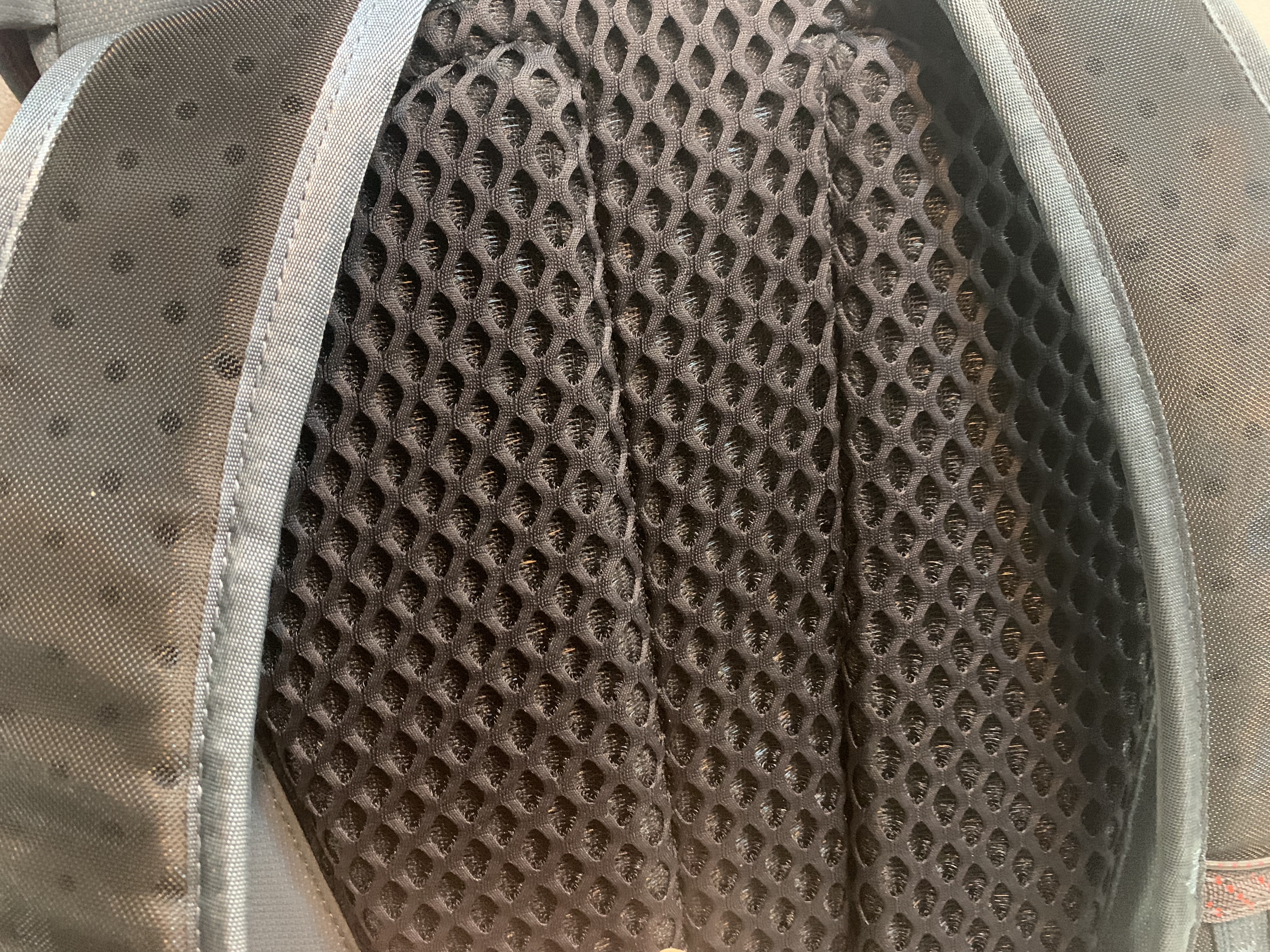 배낭의 뒷면입니다. 제가 좋아하는 공중부양 등판 기능은 없습니다. 델링 자체가 경량 배낭에 속해서인지 철 프레임이 들어가야 하는 공중부양 기능은 빠진 것으로 보입니다. 메쉬형태로 나름 구성을 했지만 등에 땀이 많은 사람 혹은 한여름에는 사용이 어려울 수 있을지도 모르겠습니다.
