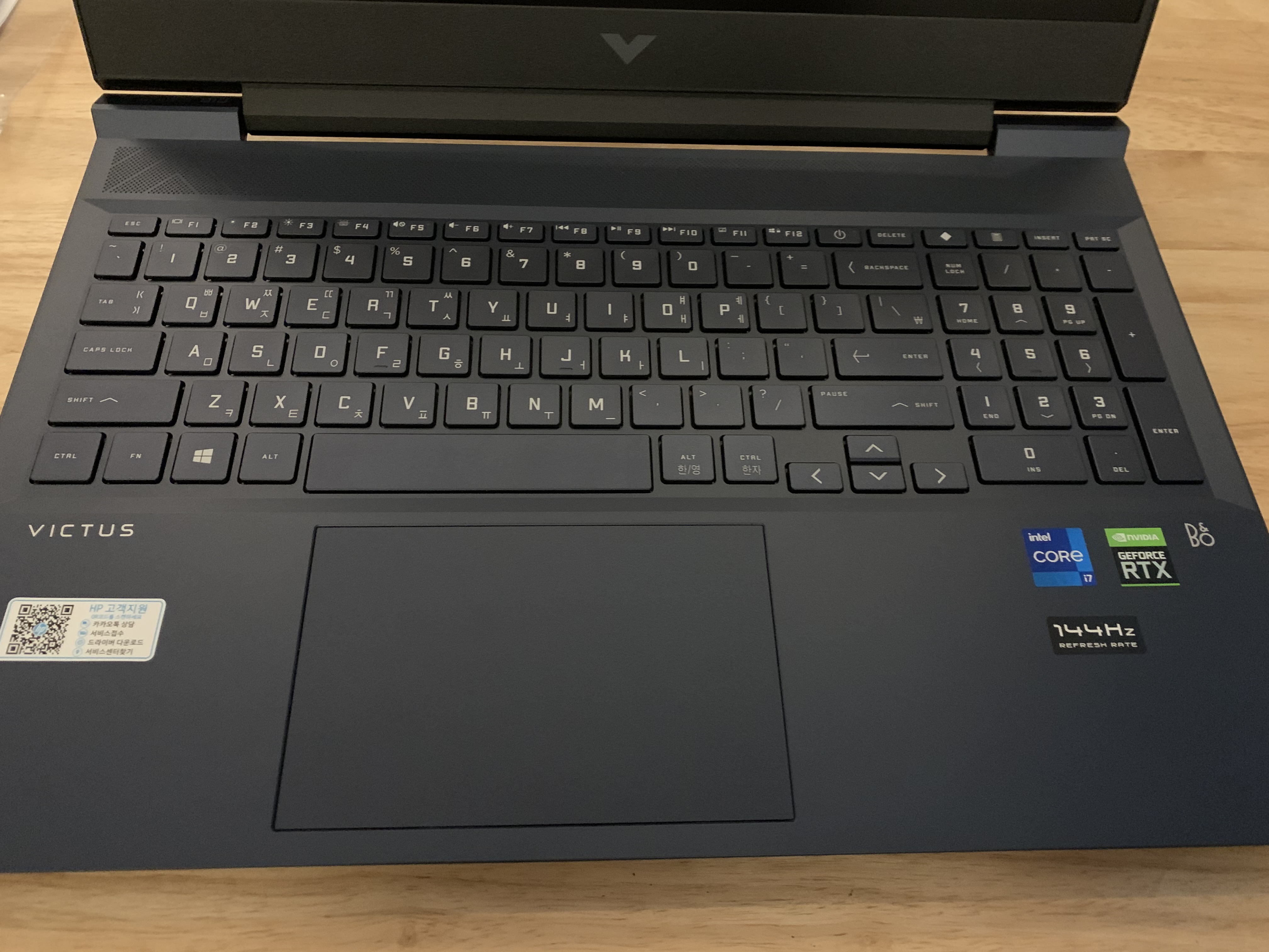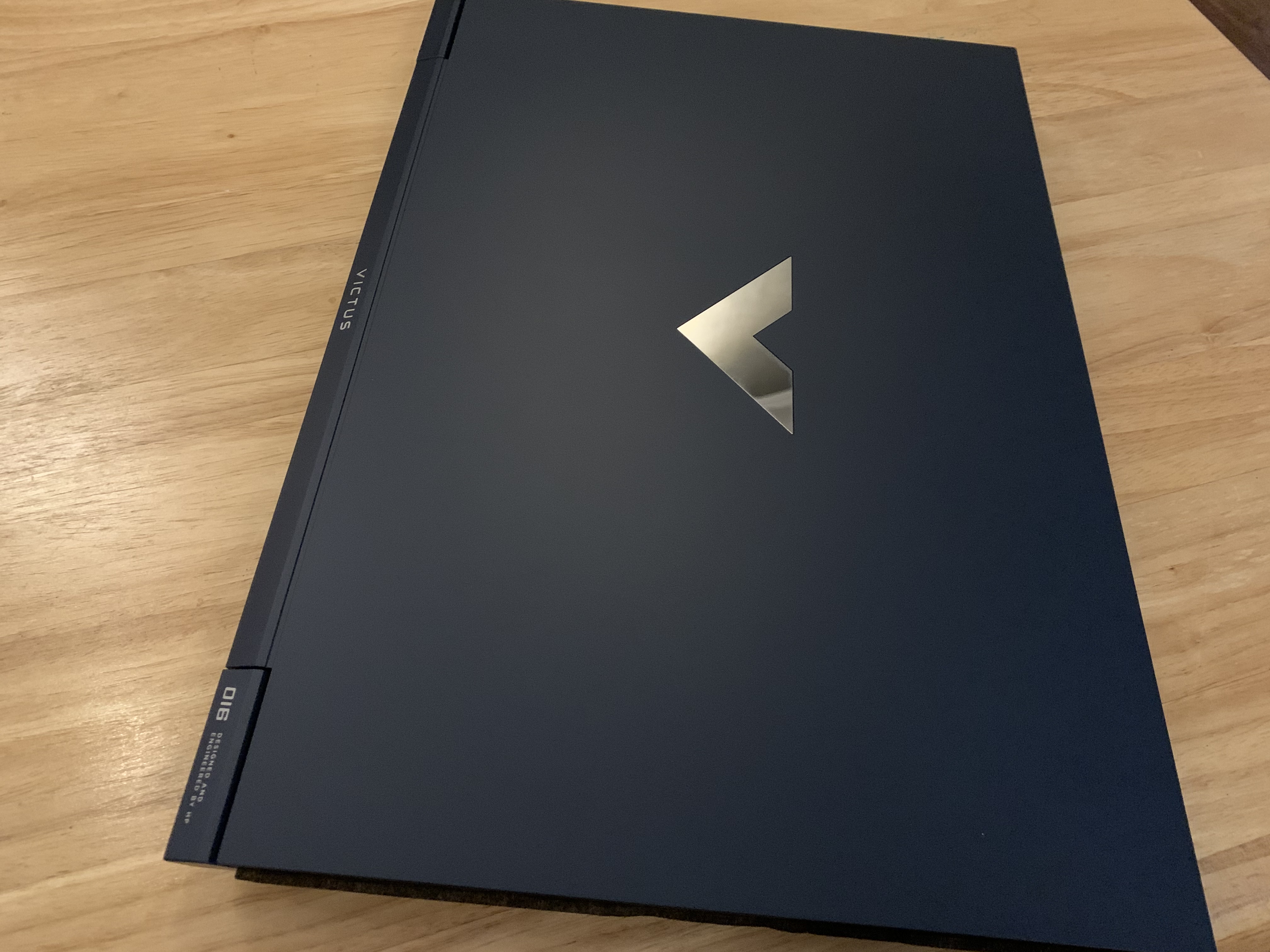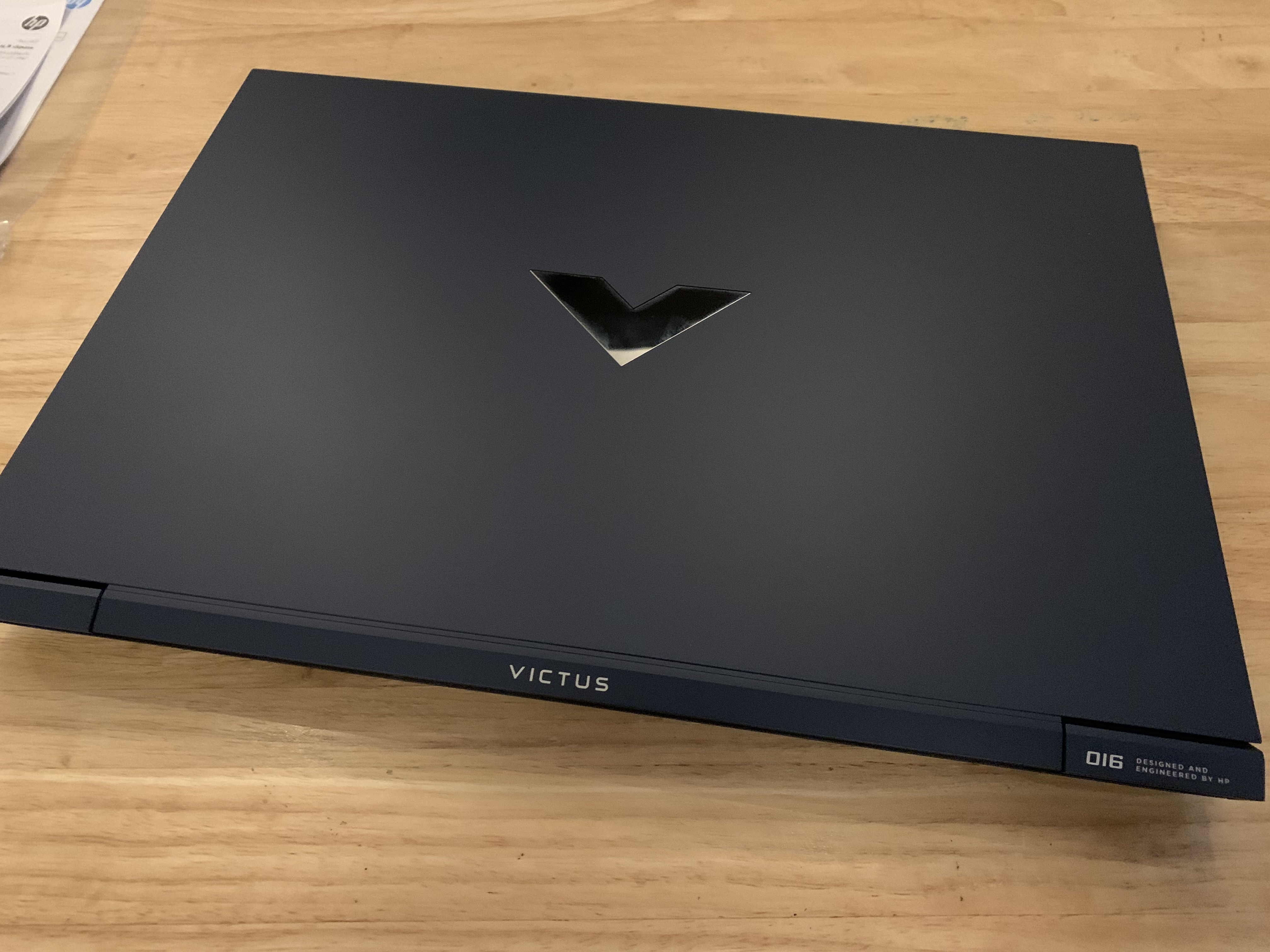 포장을 벗겨내고 난 후의 모습입니다. 화이트, 블랙, 블루 중 블랙을 하고 싶었지만 재고가 없는 관계로 블루 컬러를 선택했습니다. 다행히 흔히 우리가 아는 그런 파란색은 아니고 다크 네이비에 가까운 컬러라서 나름 만족했던 거 같아요. 소재도 매트한 느낌의 무광이라 고급져보이고 지문도 많이 안 묻어날 거 같습니다. 가운데는 VICTUS의 V 표시가 있는데 개인적으로 이 부분을 예전 맥북처럼 흰색의 LED로 되었다면 더 좋지 않았을까 하는 생각입니다.