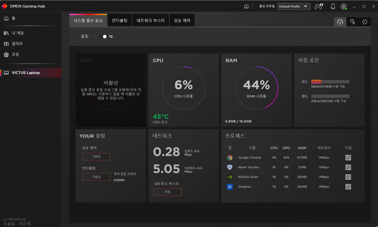 빅터스도 OMEN 브랜드의 제품들과 마찬가지로 OMEN 게이밍 허브를 제공합니다.